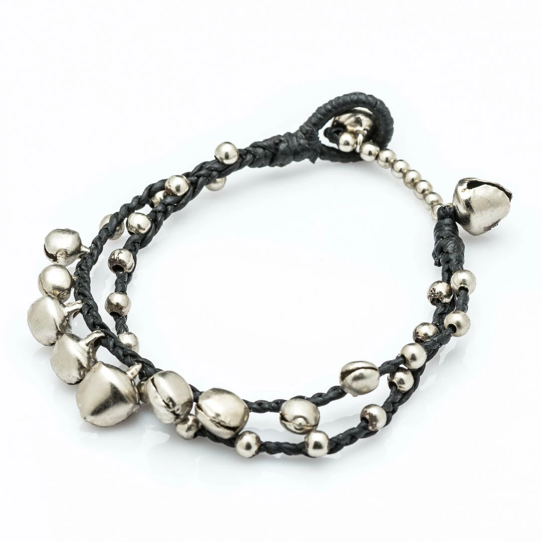 HaremPants.com Black Harem Pants Silver Color Bell Waxed Cotton Bracelets In Black