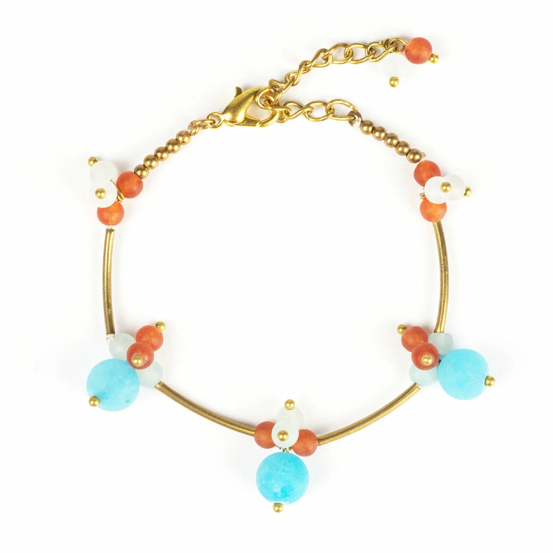 Beautiful handcrafted brass dangle bracelet wired with brass and colorful beads