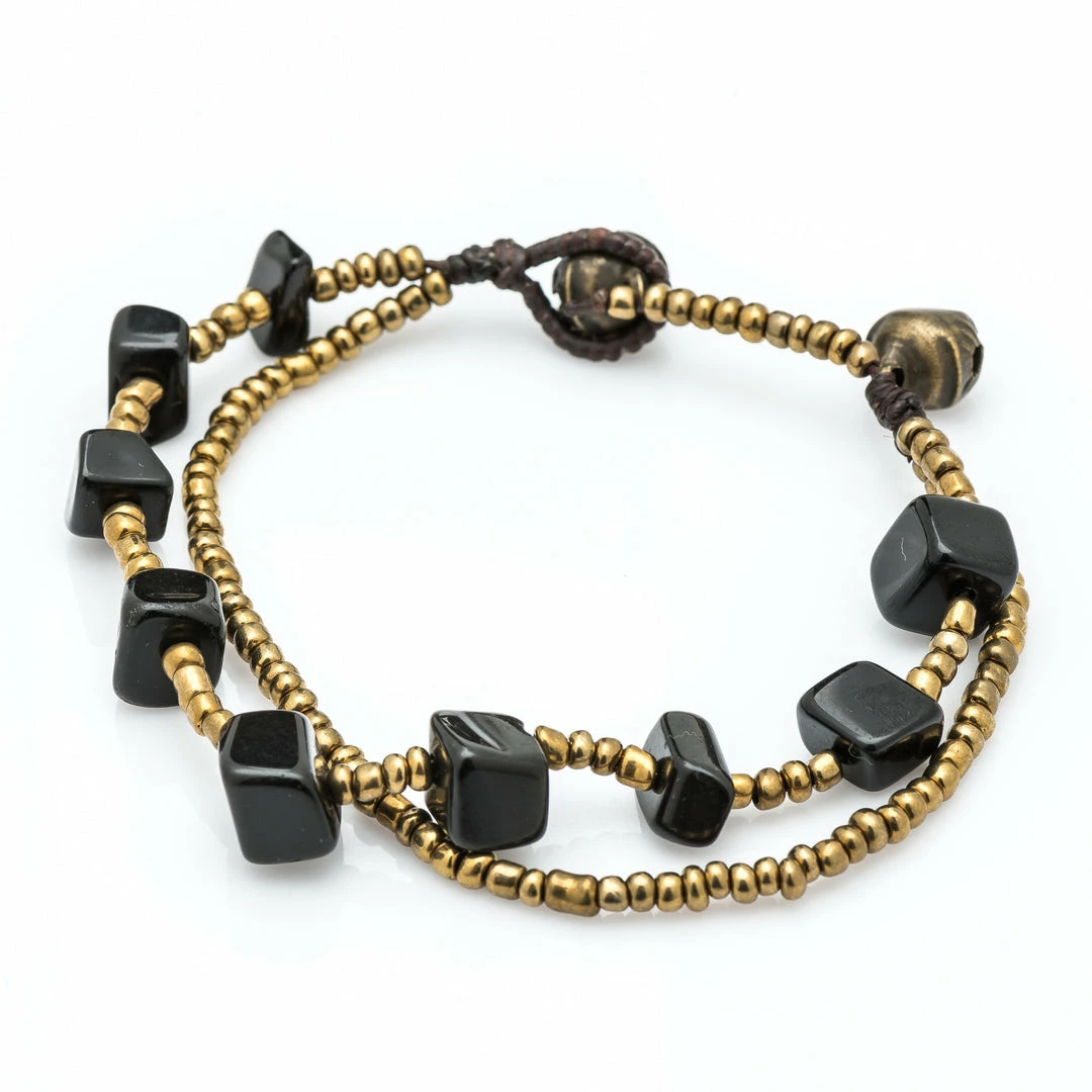 HaremPants.com Brass Bead And Black Stone Double Strand Bracelets