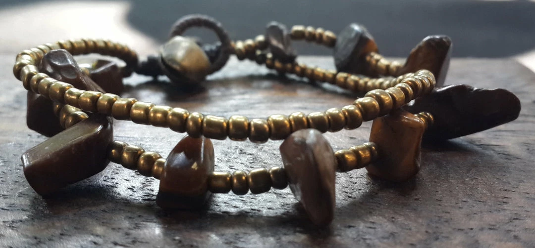 HaremPants.com Brass Bead And Tiger Eye Stone Double Strand Bracelets