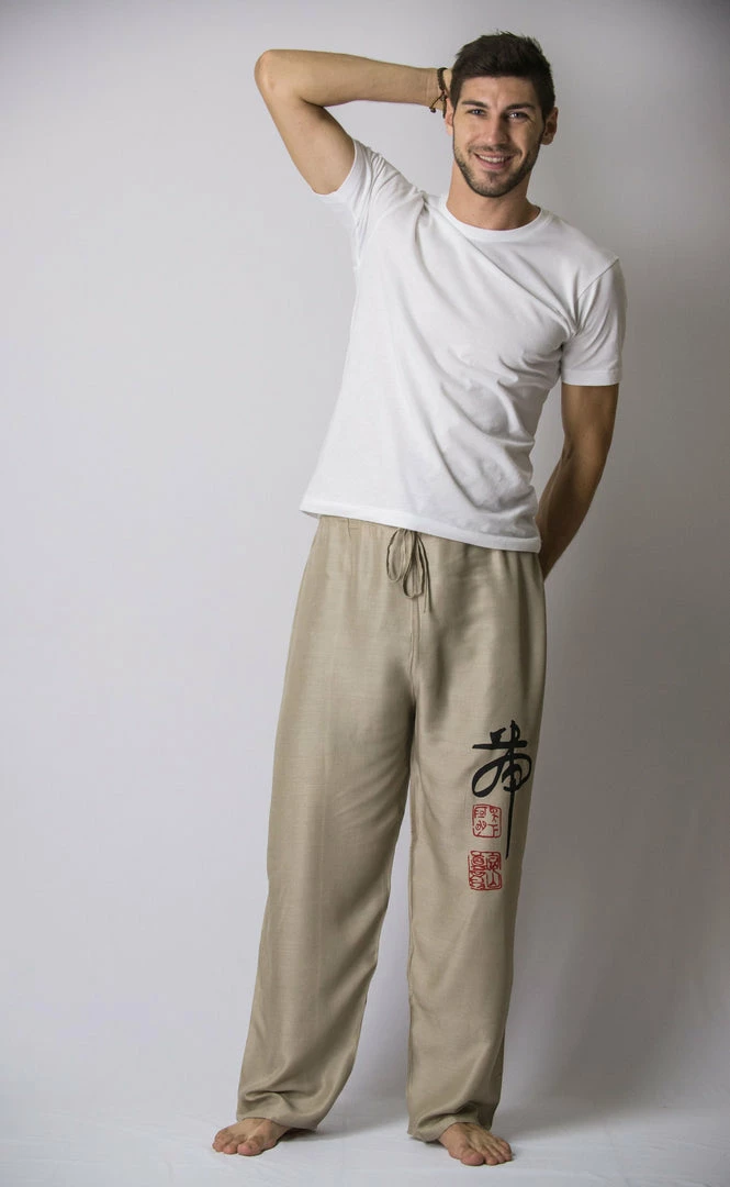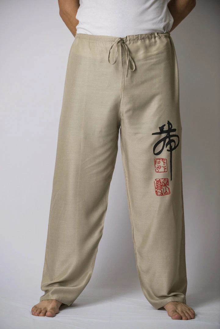 Chinese Writing Men’s Thai Yoga Pants in Khaki