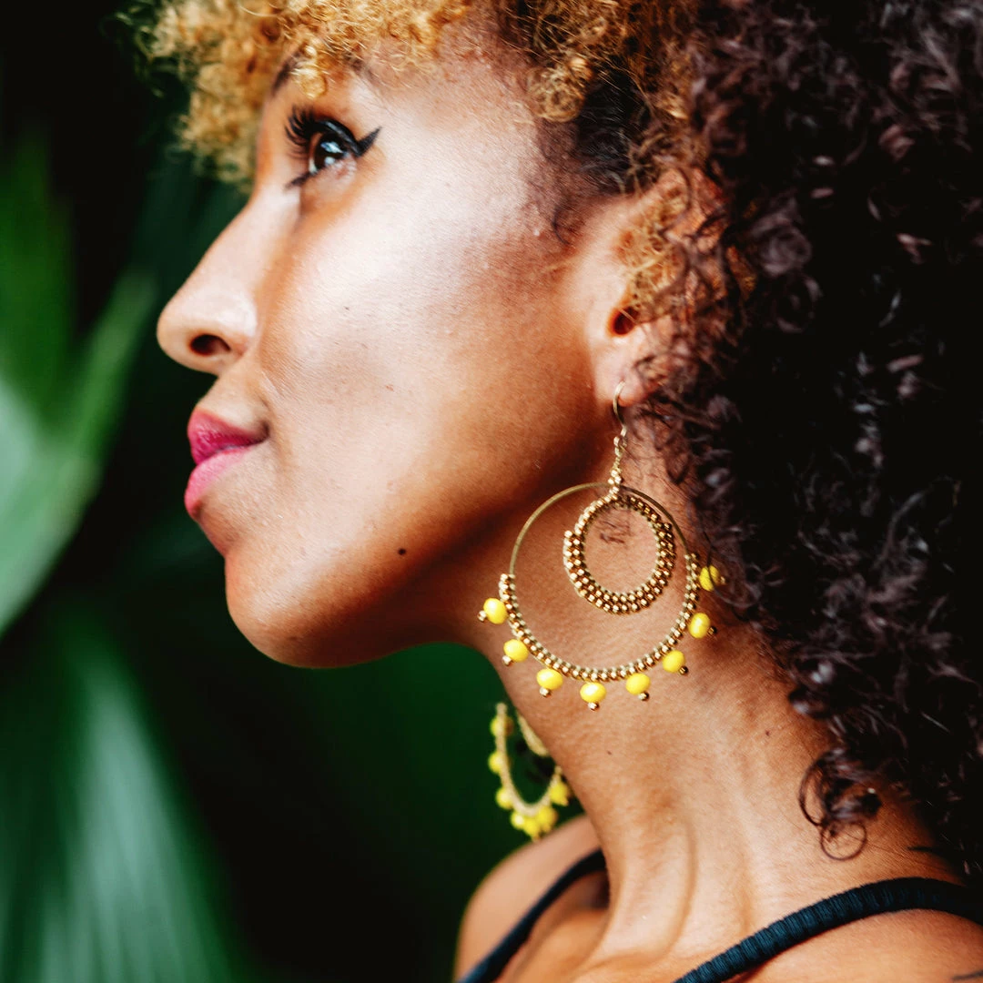 Beautiful Thai artisan handcrafted wired brass double hoop dangle earrings with lovely beads.