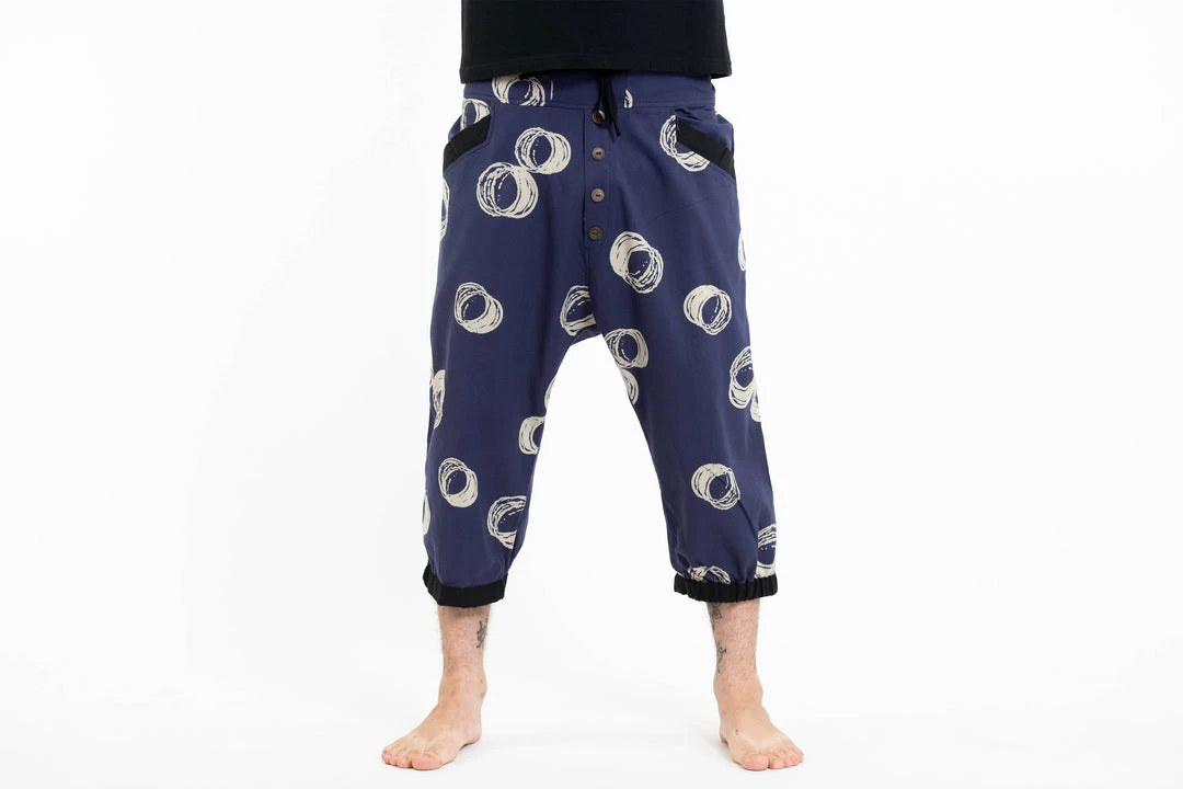 These cool harem pants are made of Thai Cotton with funky prints, stylish faux buttons, and pockets