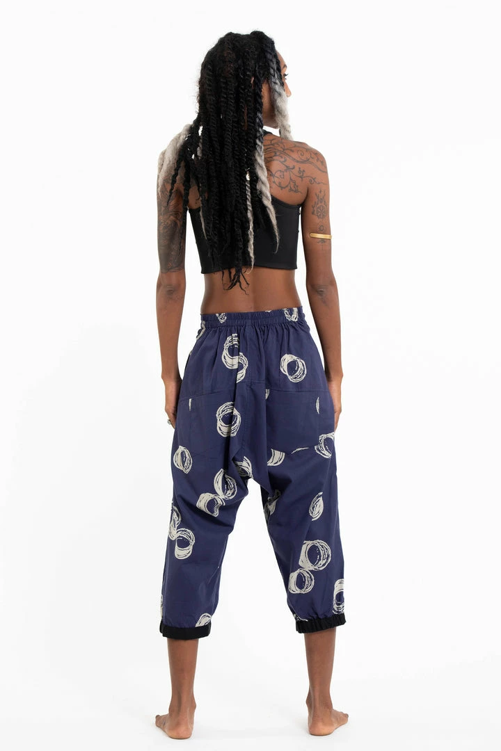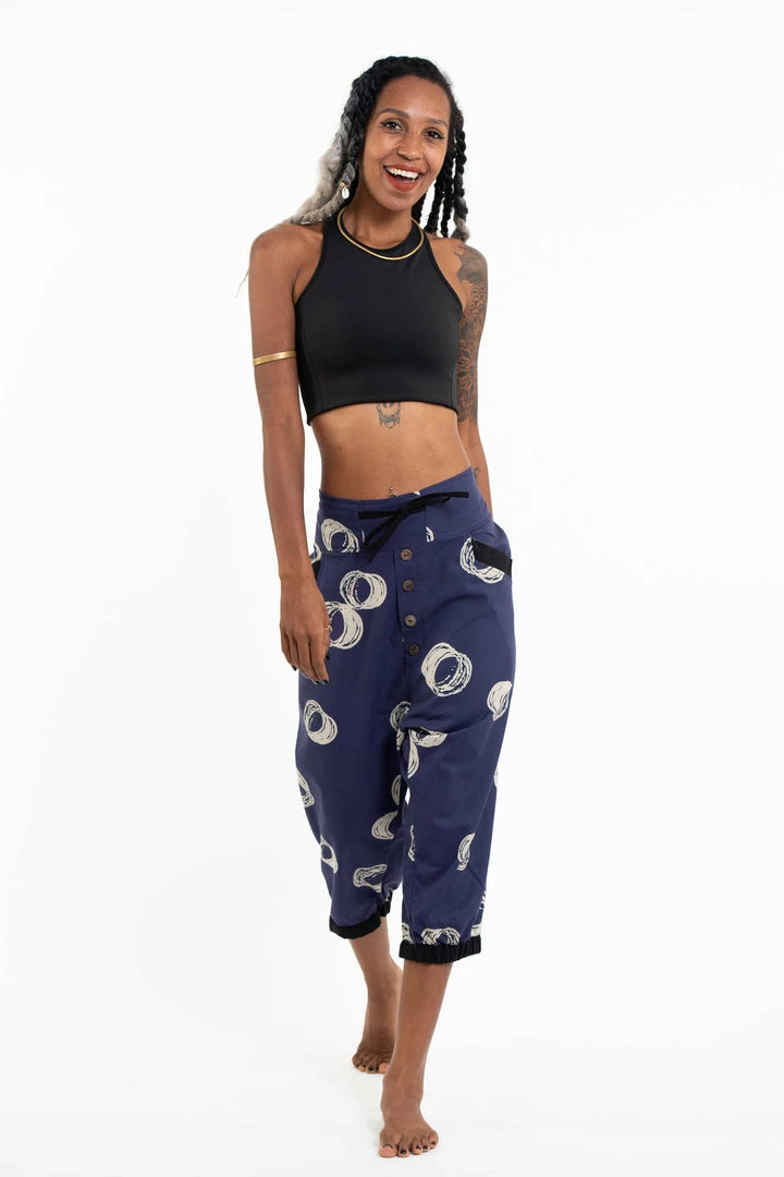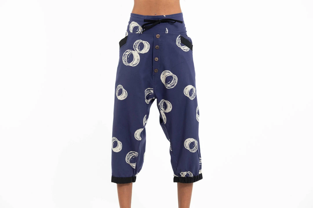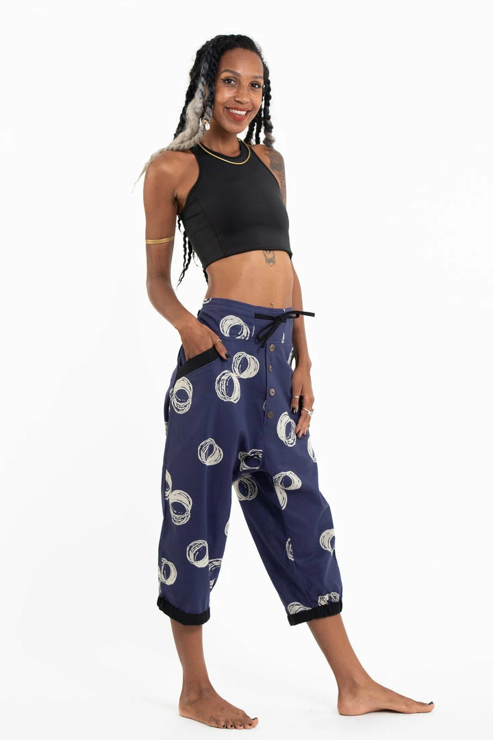 HaremPants.com Circles Women’s Harem Pants With Faux Buttons In Navy