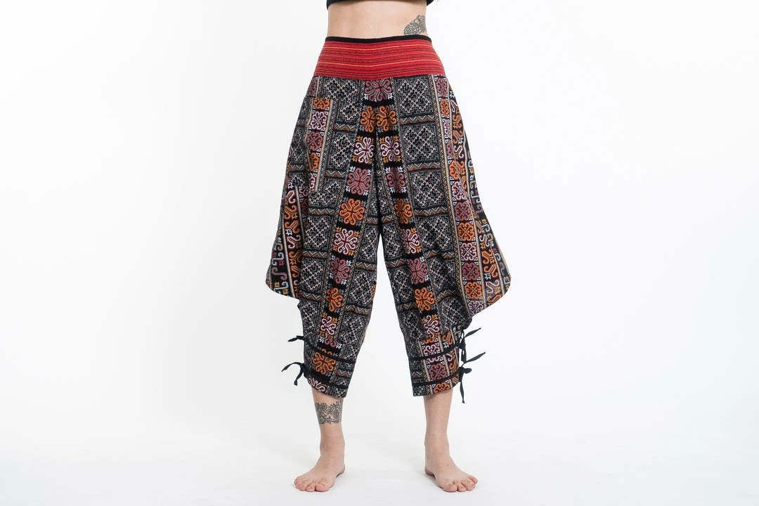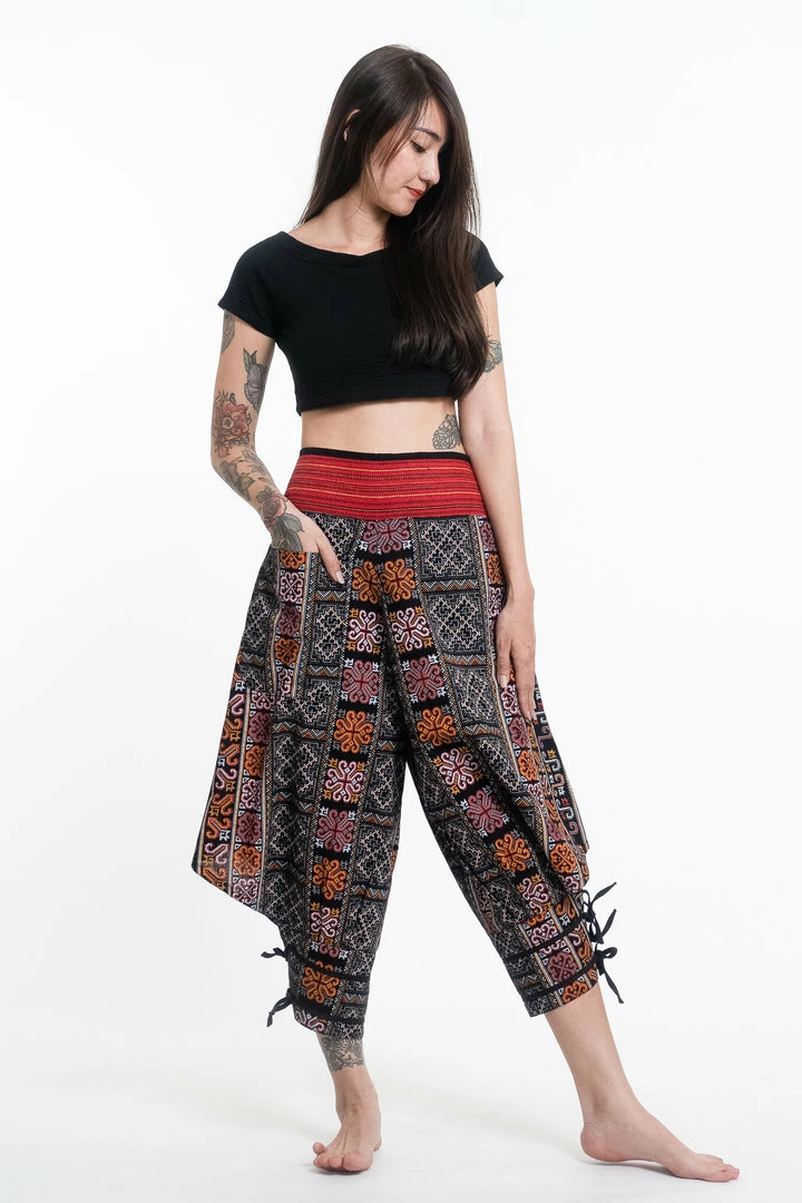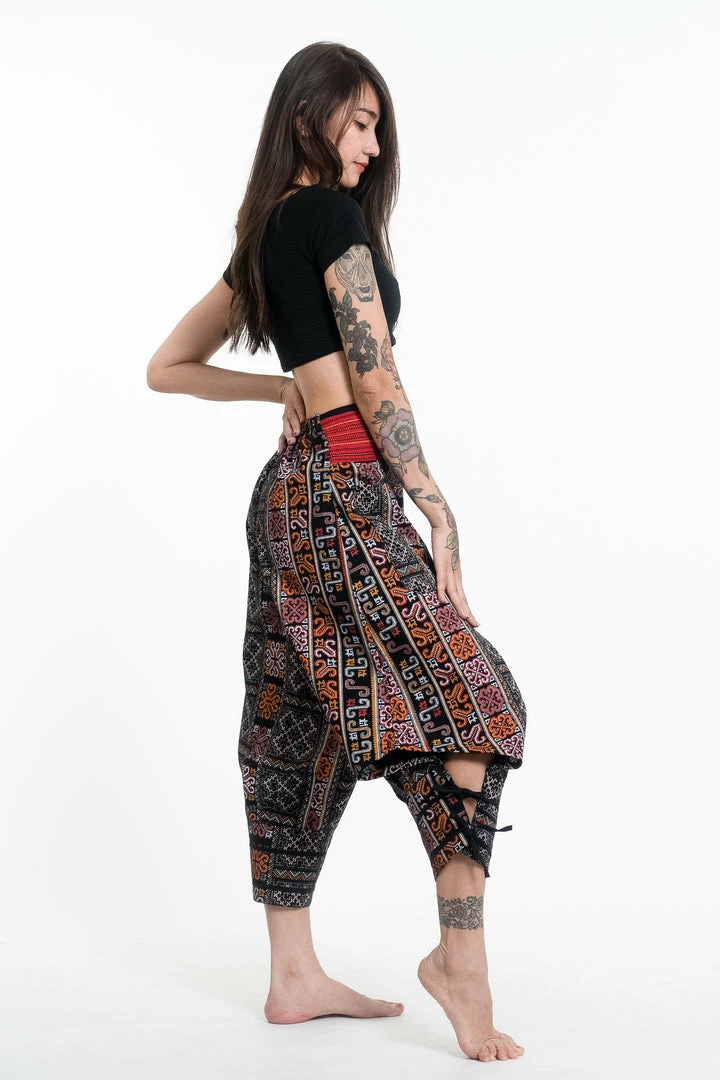 HaremPants.com Clovers Thai Hill Tribe Fabric Women’s Harem Pants With Ankle Straps In Black