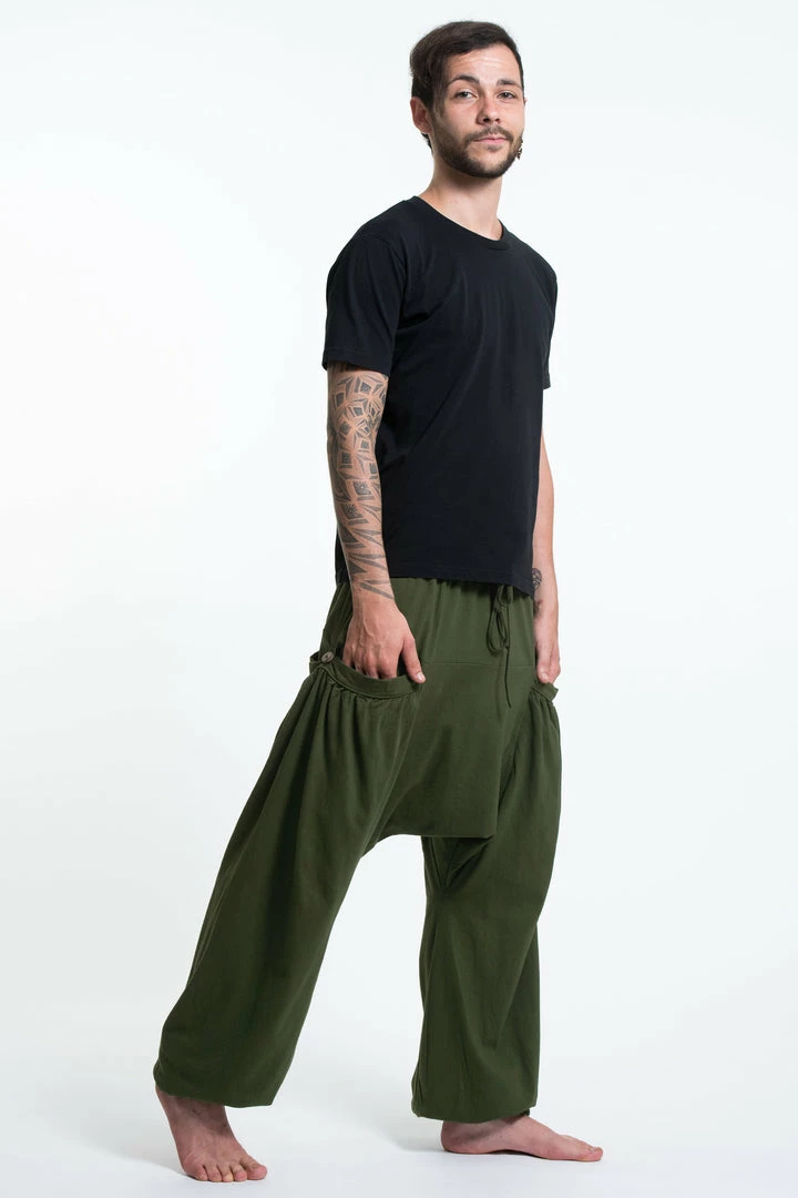 Loose-fit knitted cotton harem pants featuring elastic waist and ankle cuffs.