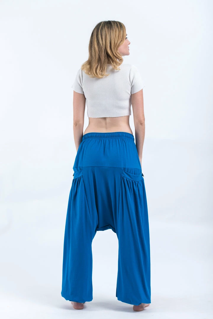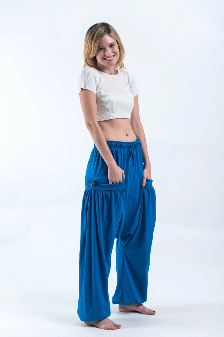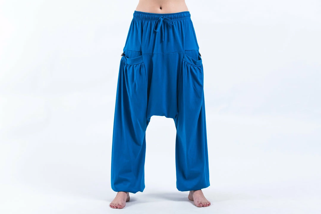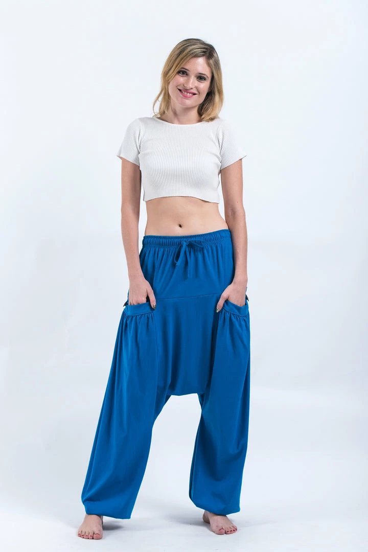 Loose-fit knitted cotton harem pants featuring elastic waist and ankle cuffs.
