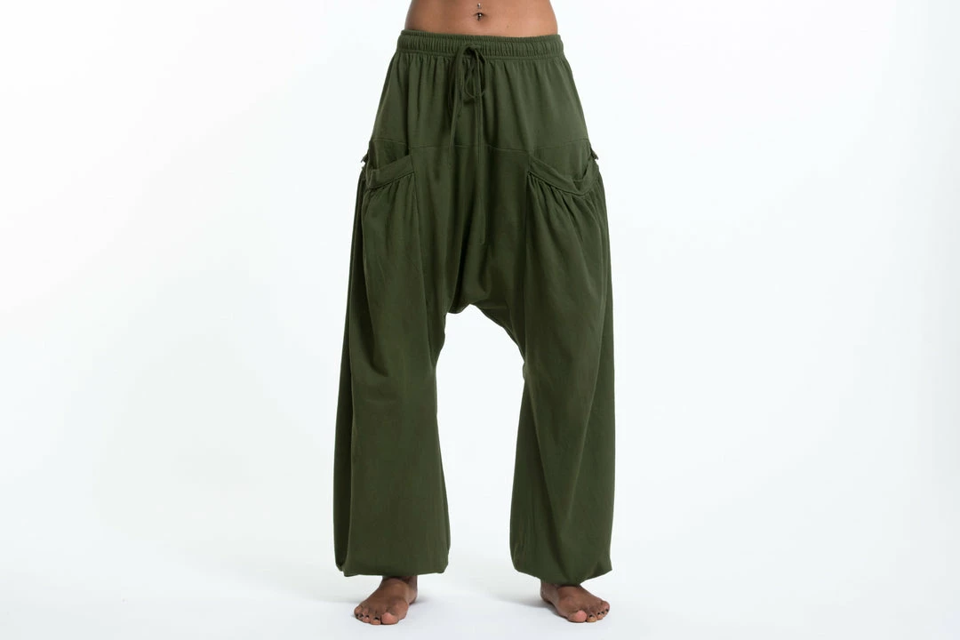 Loose-fit knitted cotton harem pants featuring elastic waist and ankle cuffs.