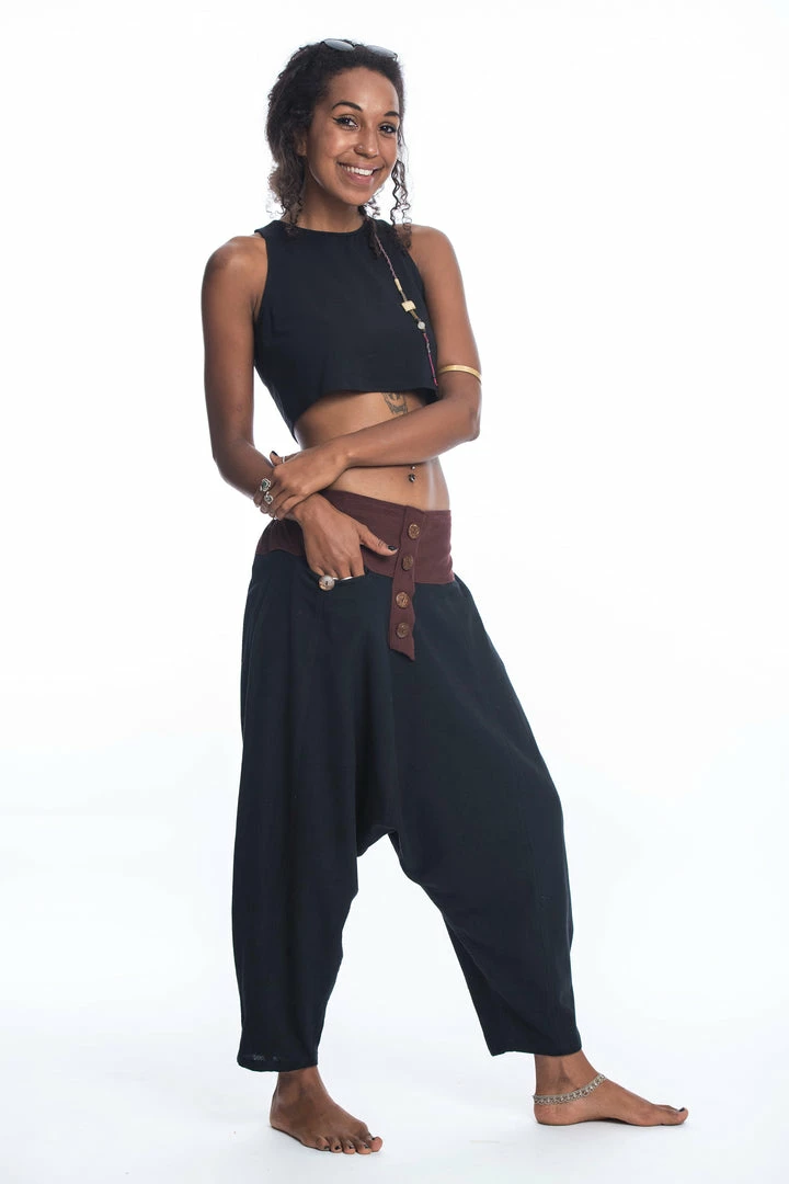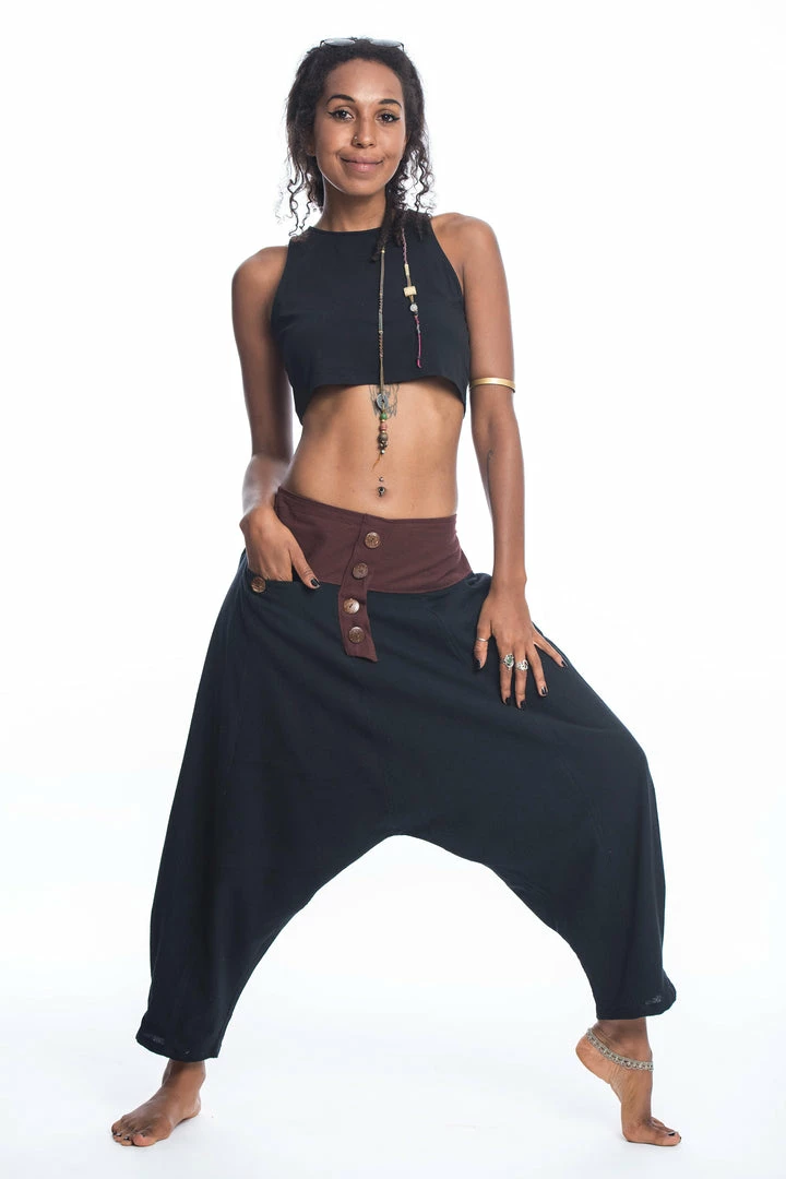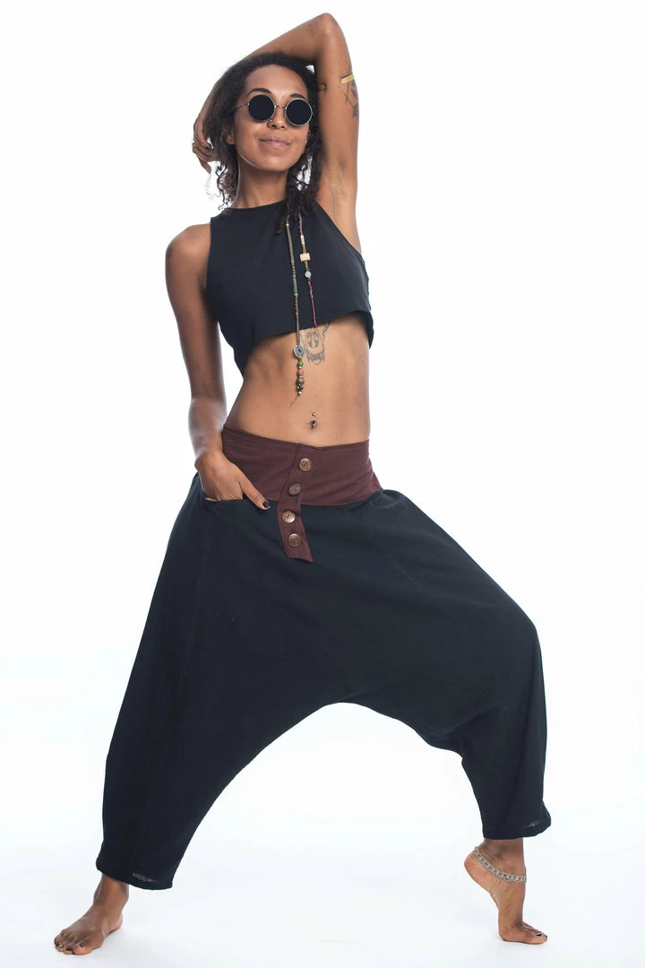 Cotton Harem Pants with Faux Buttons are super comfy and fun.