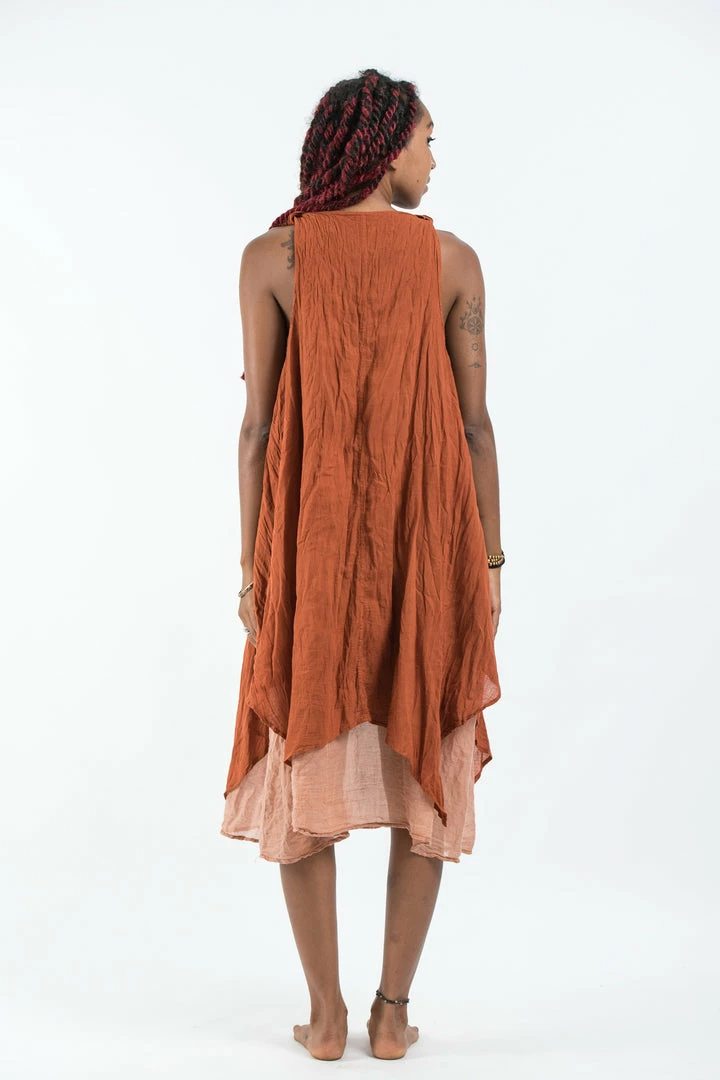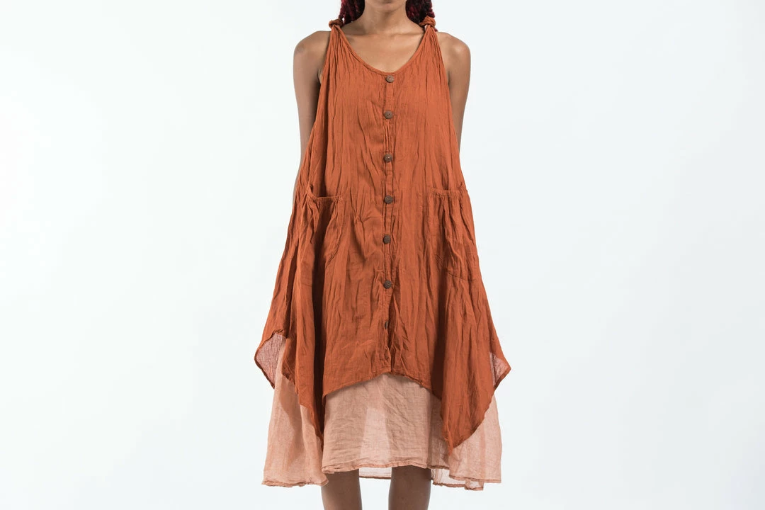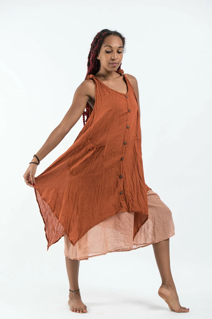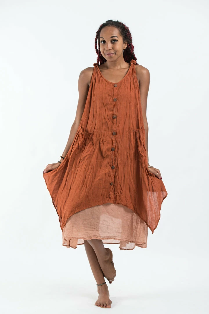 Solid crinkled hill tribe cotton double layered stylish tank dress with two side pockets. One size fits most.