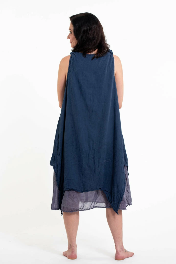 Solid crinkled hill tribe cotton double layered stylish tank dress with two side pockets. One size fits most.