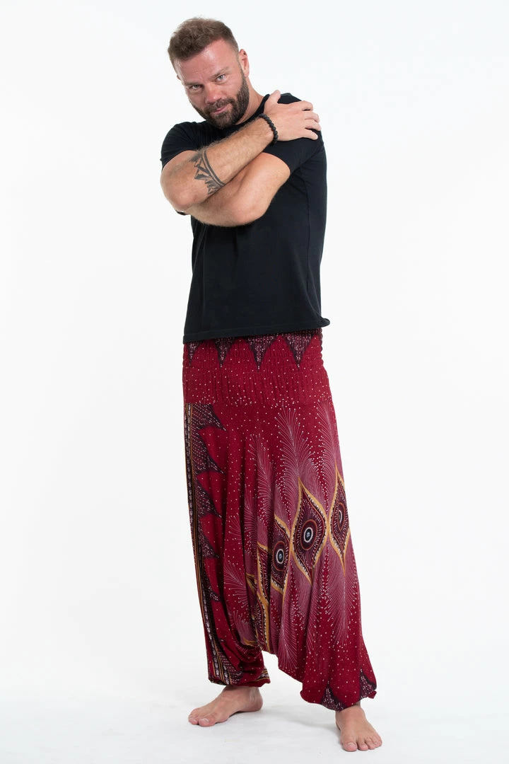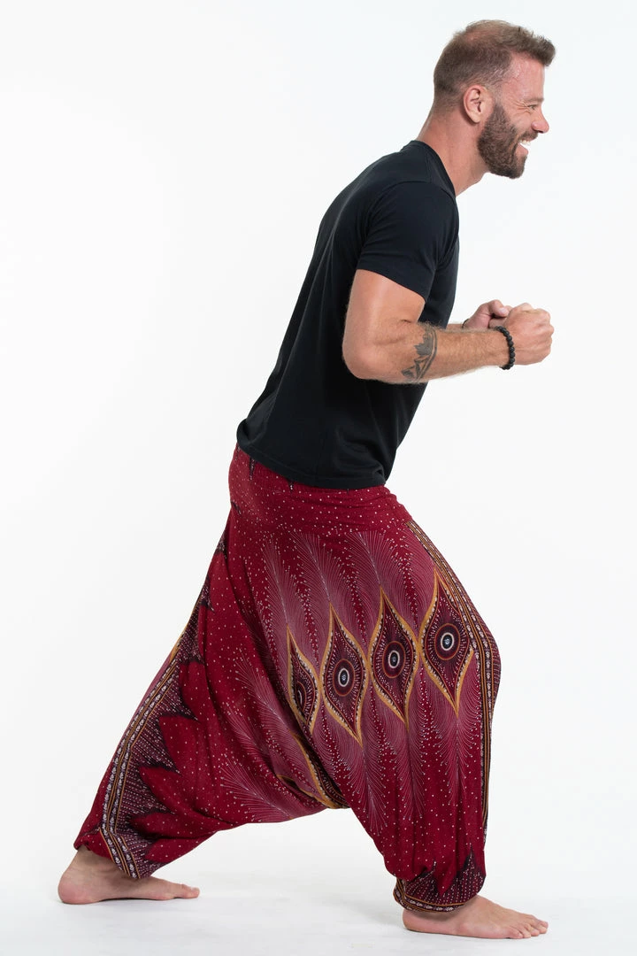 HaremPants.com Diamond Peacock Drop Crotch Men’s Harem Pants In Red