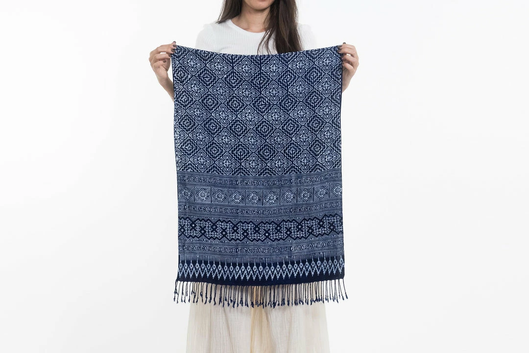HaremPants.com Diamonds Print Hmong Indigo Batik Shawl Scarf Women’s