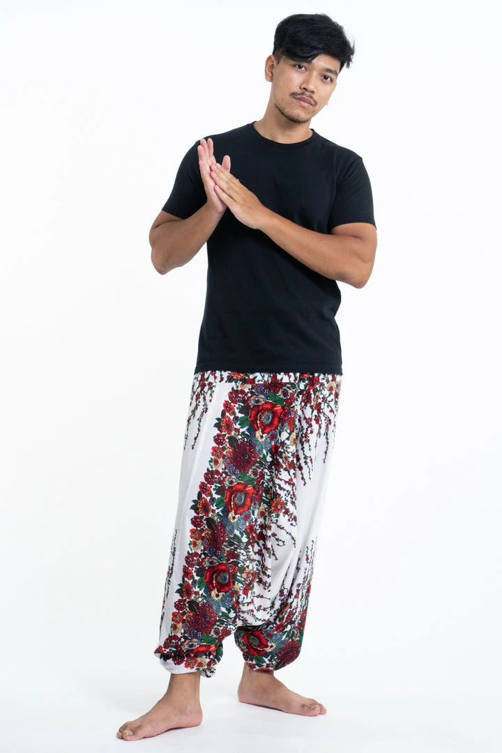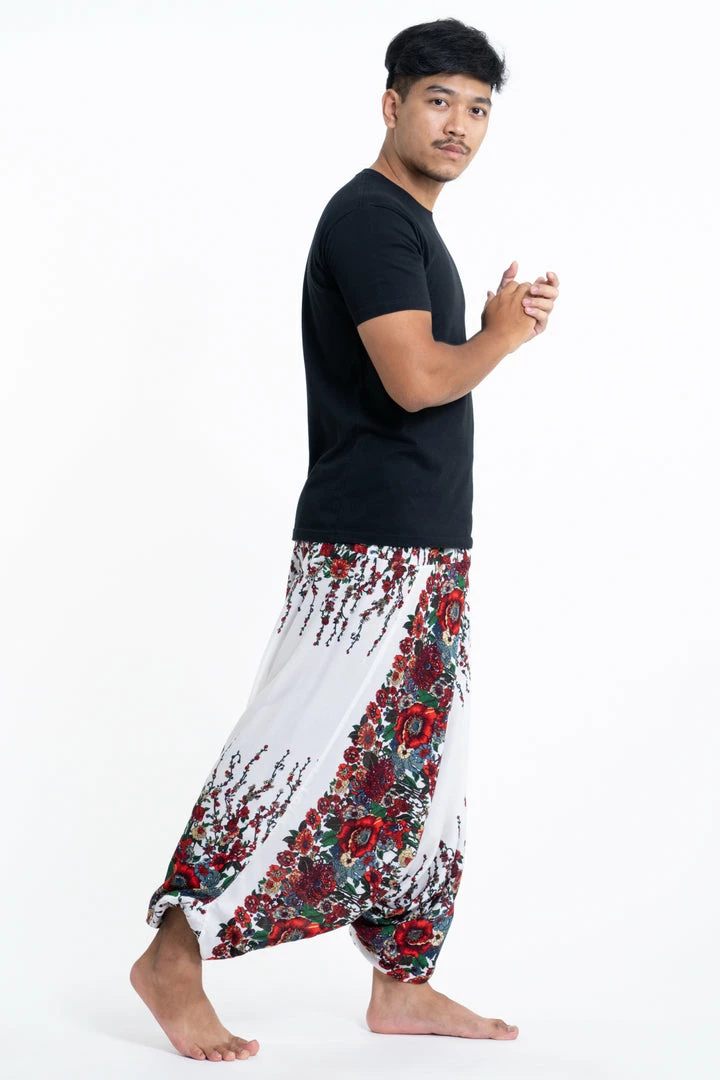 HaremPants.com Floral Drop Crotch Men’s Harem Pants In White