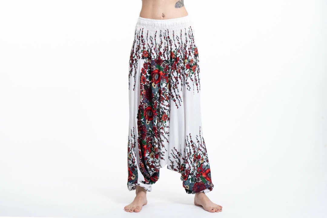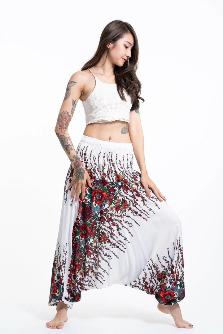 HaremPants.com Floral Jumpsuit Harem Pants In White