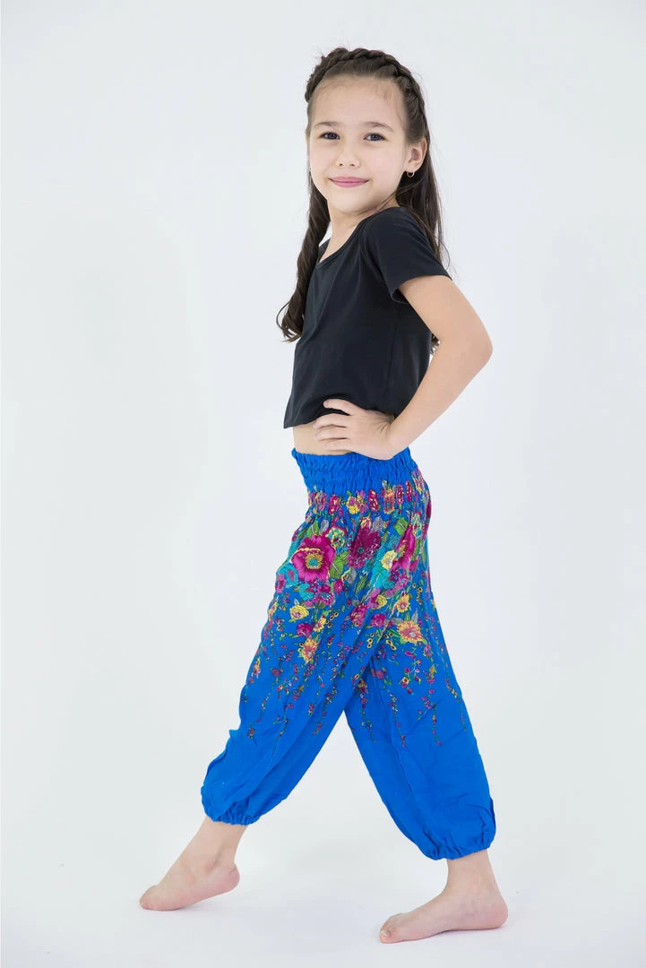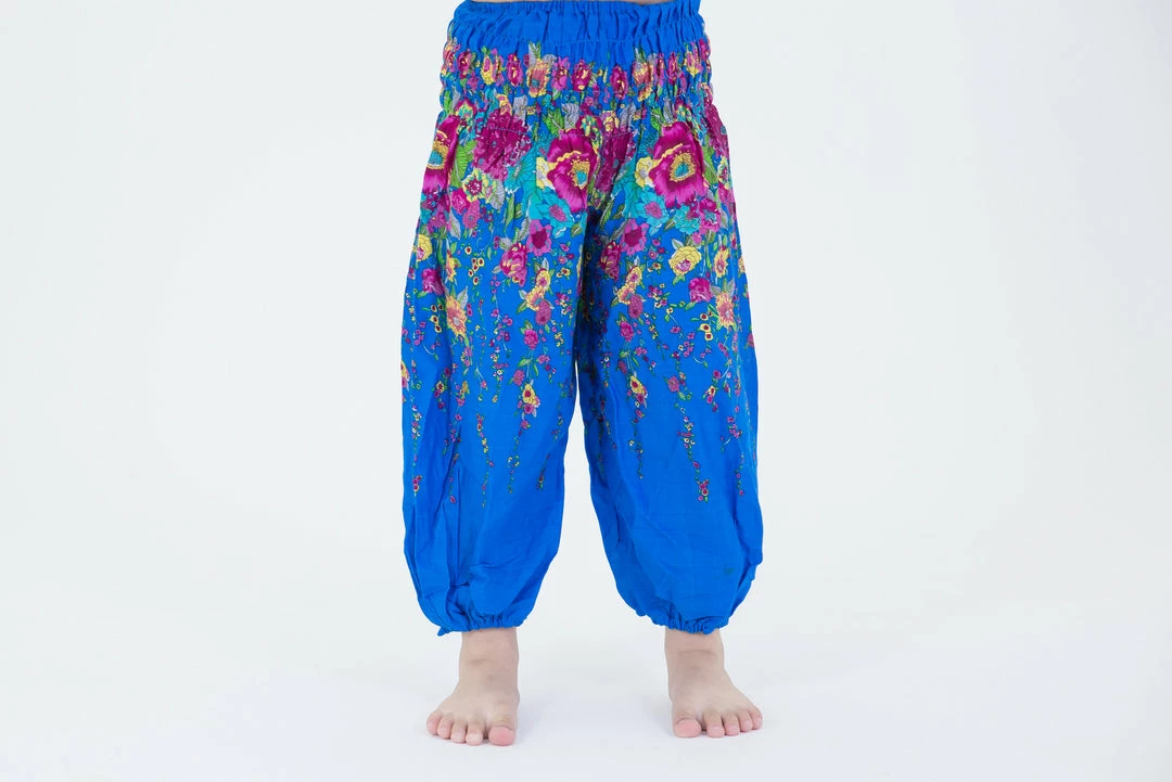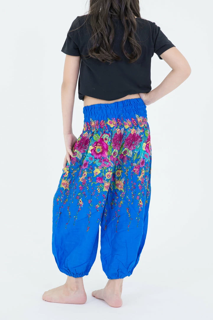 HaremPants.com Floral Kids Harem Pants In Ocean Blue High Cut