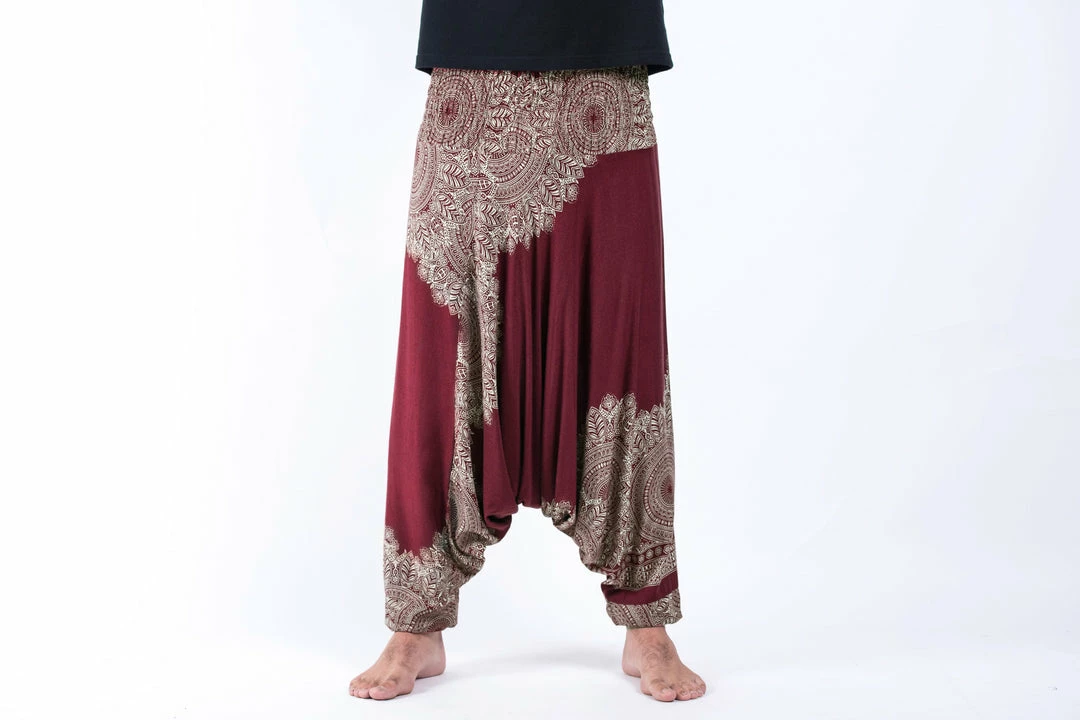 HaremPants.com Floral Mandalas Drop Crotch Men’s Harem Pants In Maroon
