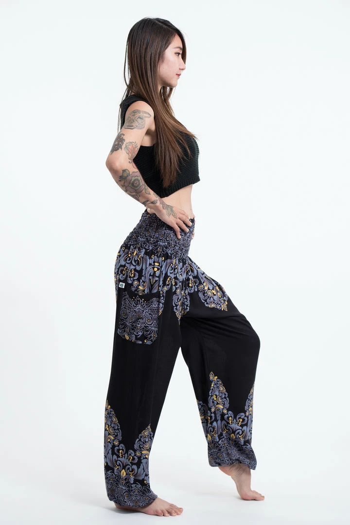 Super soft and lightweight Floral Vines Harem Pants made with Thai rayon fabric.
