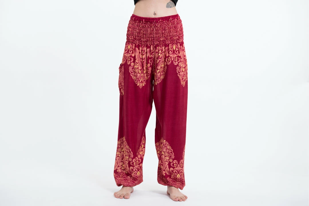 Super soft and lightweight Floral Vines Harem Pants made with Thai rayon fabric.