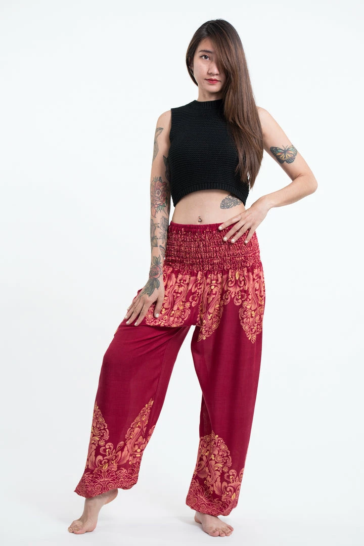 All these high cut gender neutral harem pants have comfy smocked waist and one side-pocket.