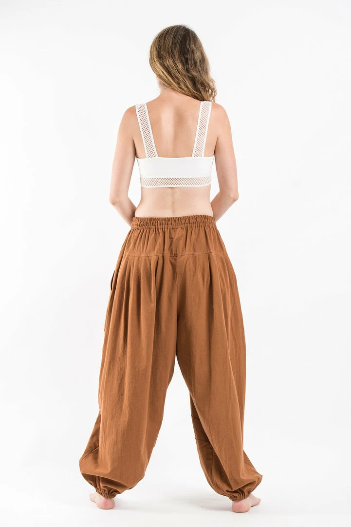 Solid Thai cotton classic genie style harem pants with minimal design on both legs.