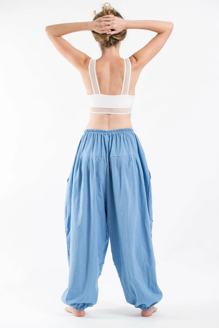 Solid Thai cotton classic genie style harem pants with minimal design on both legs.