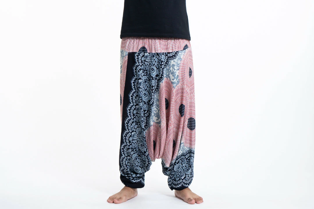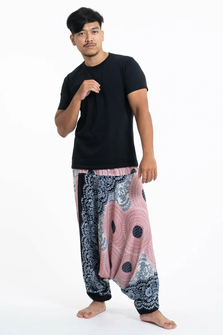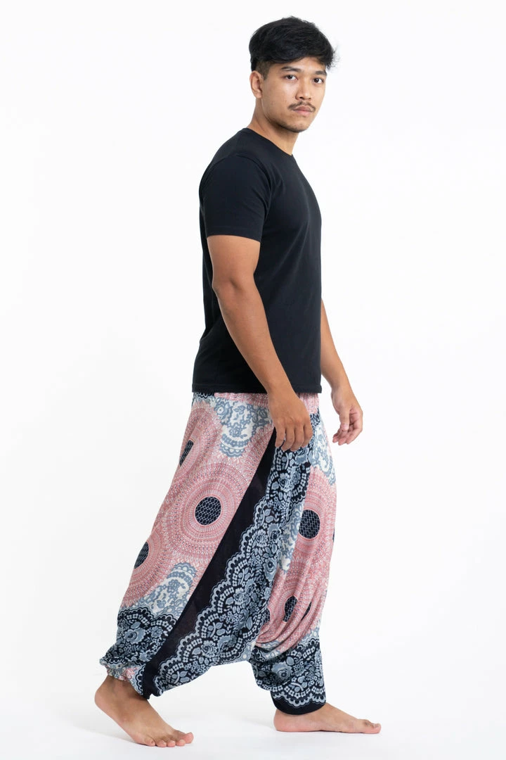 HaremPants.com Geometric Mandalas Drop Crotch Men’s Harem Pants In Pink Blue