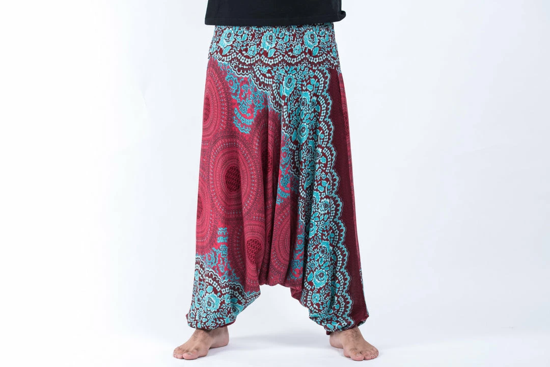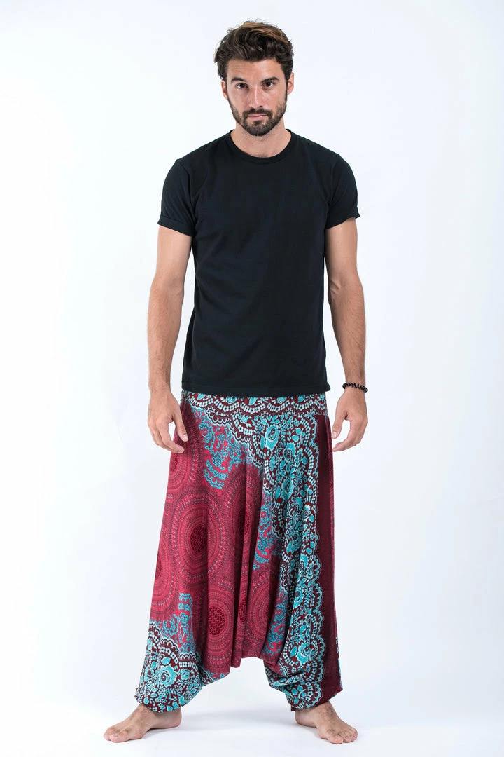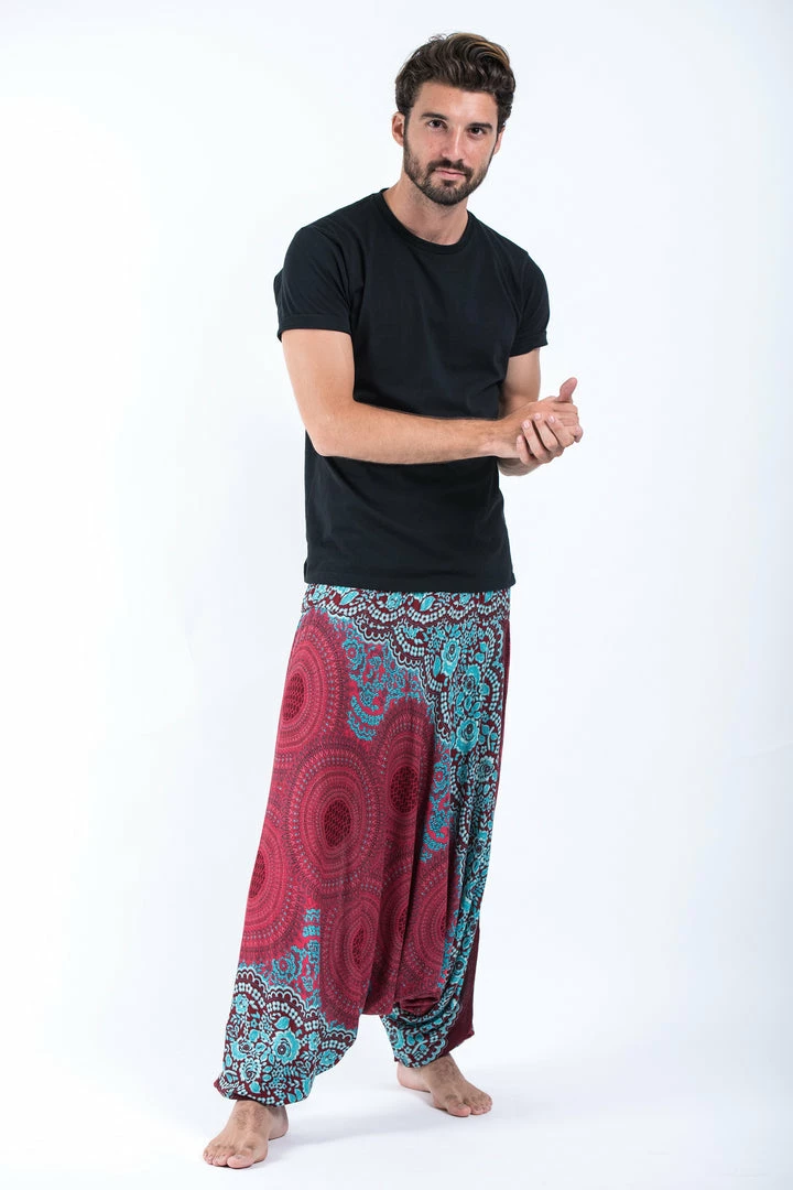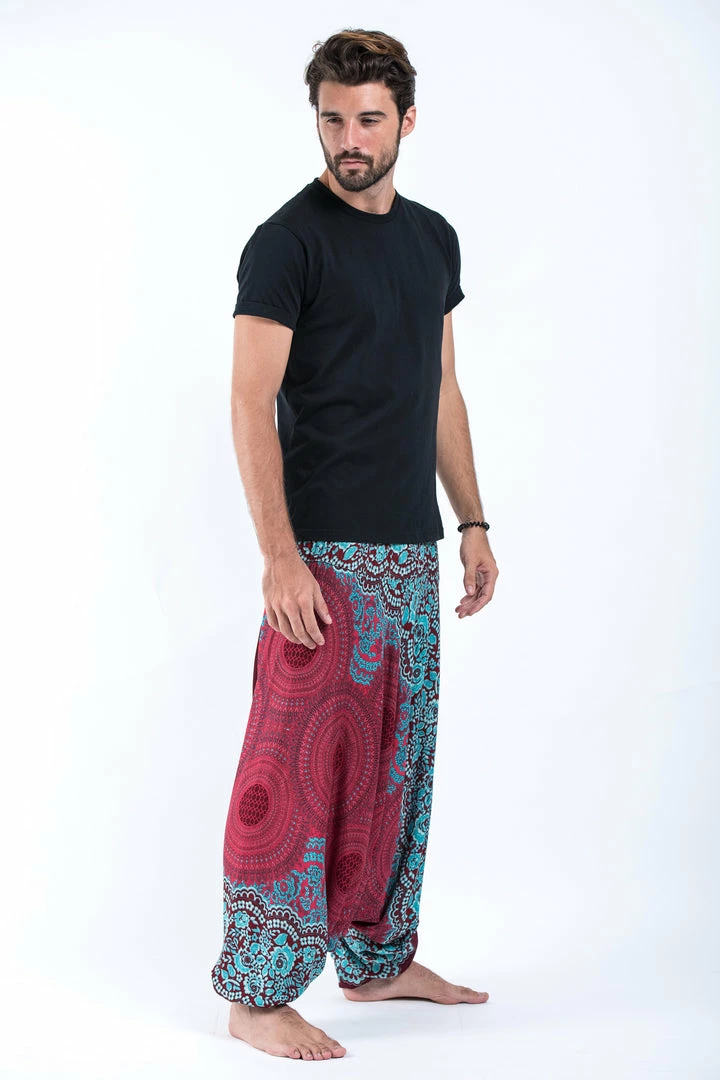 HaremPants.com Geometric Mandalas Drop Crotch Men’s Harem Pants In Red