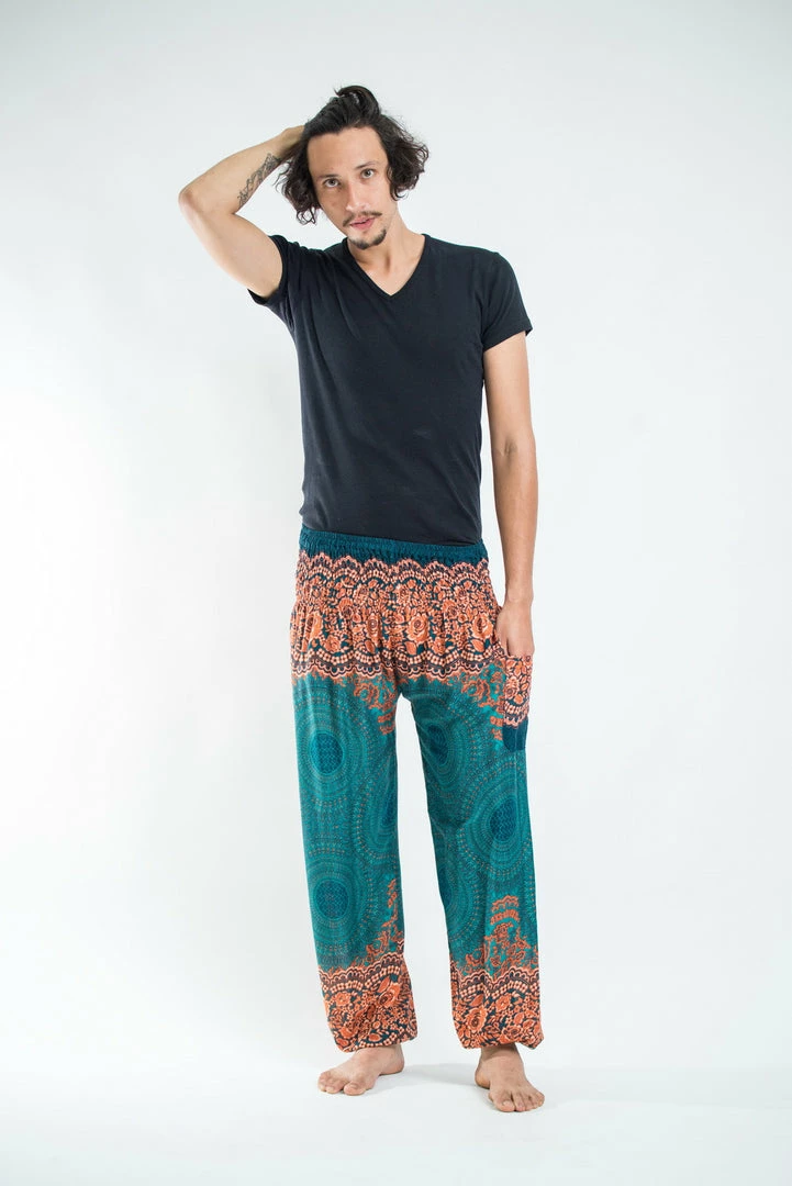 HaremPants.com Geometric Mandalas Men’s Harem Pants In Turquoise