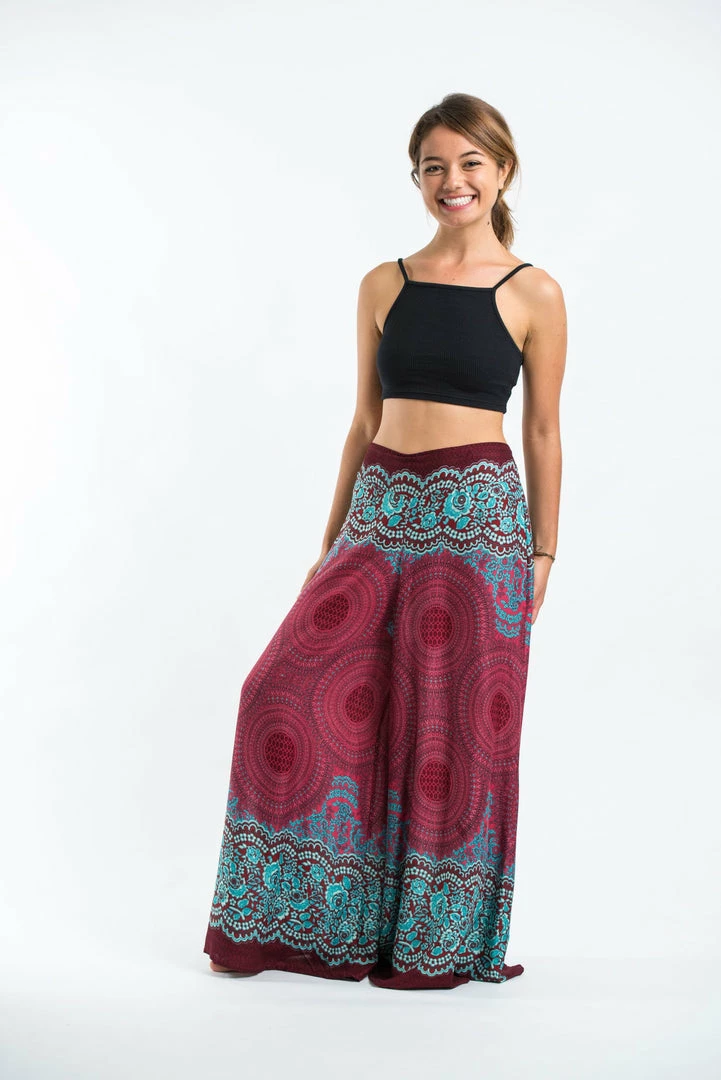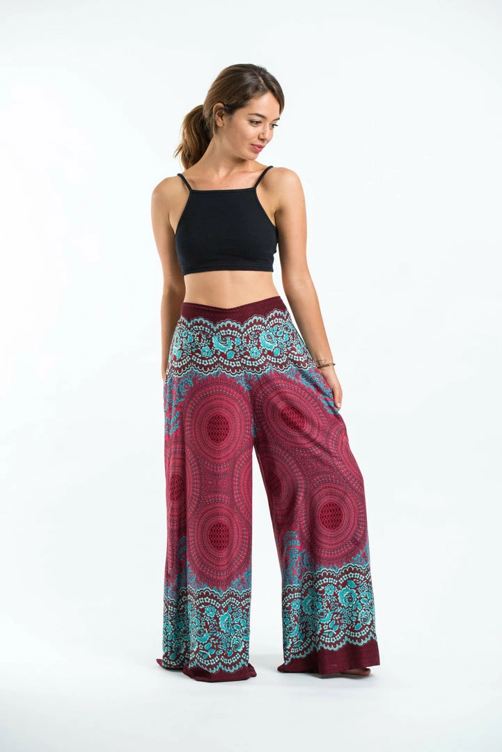 HaremPants.com Geometric Mandalas Palazzo Style Harem Pants In Red