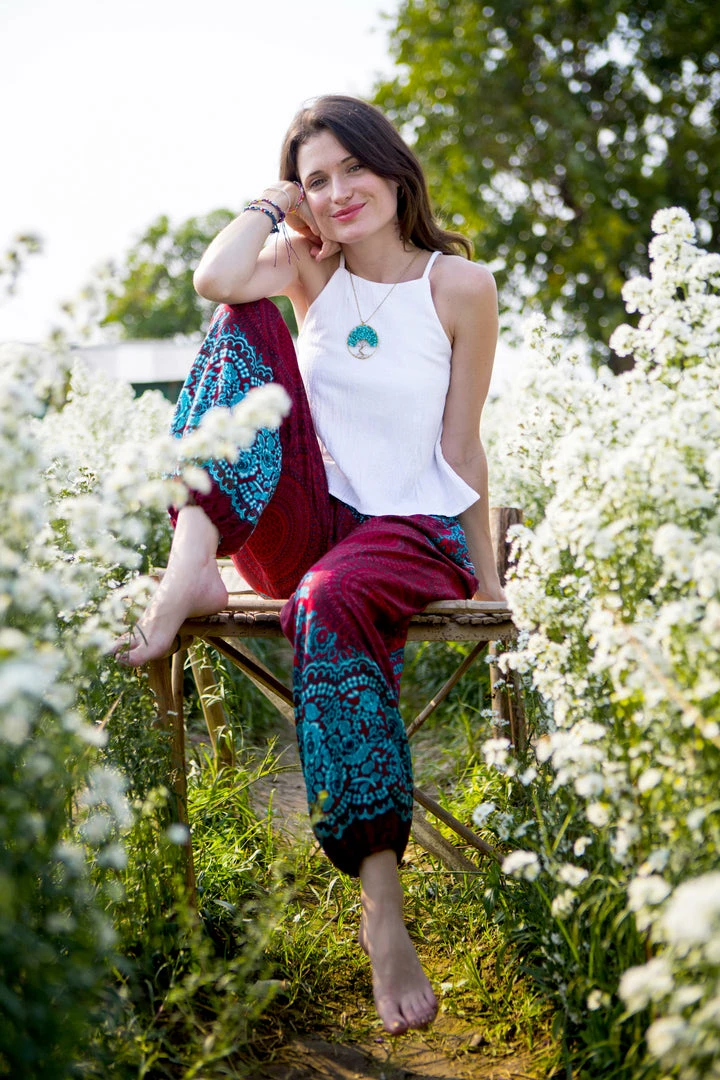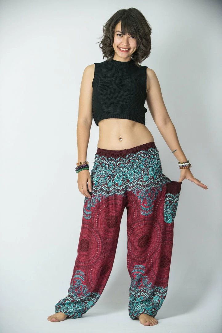 Super soft and lightweight Geometric Mandalas Harem Pants made with Thai rayon fabric.