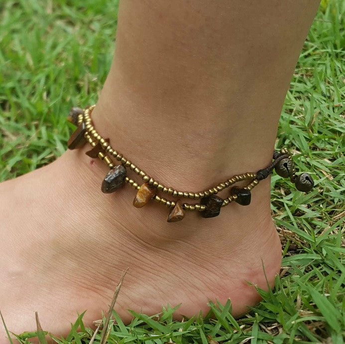 Hand Made Fair Trade Anklet Double Strand Brass Beads Tiger Eye