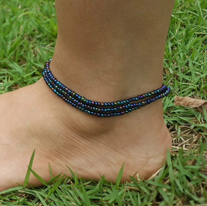Hand Made Fair Trade Anklet Three Strand Beads Purple