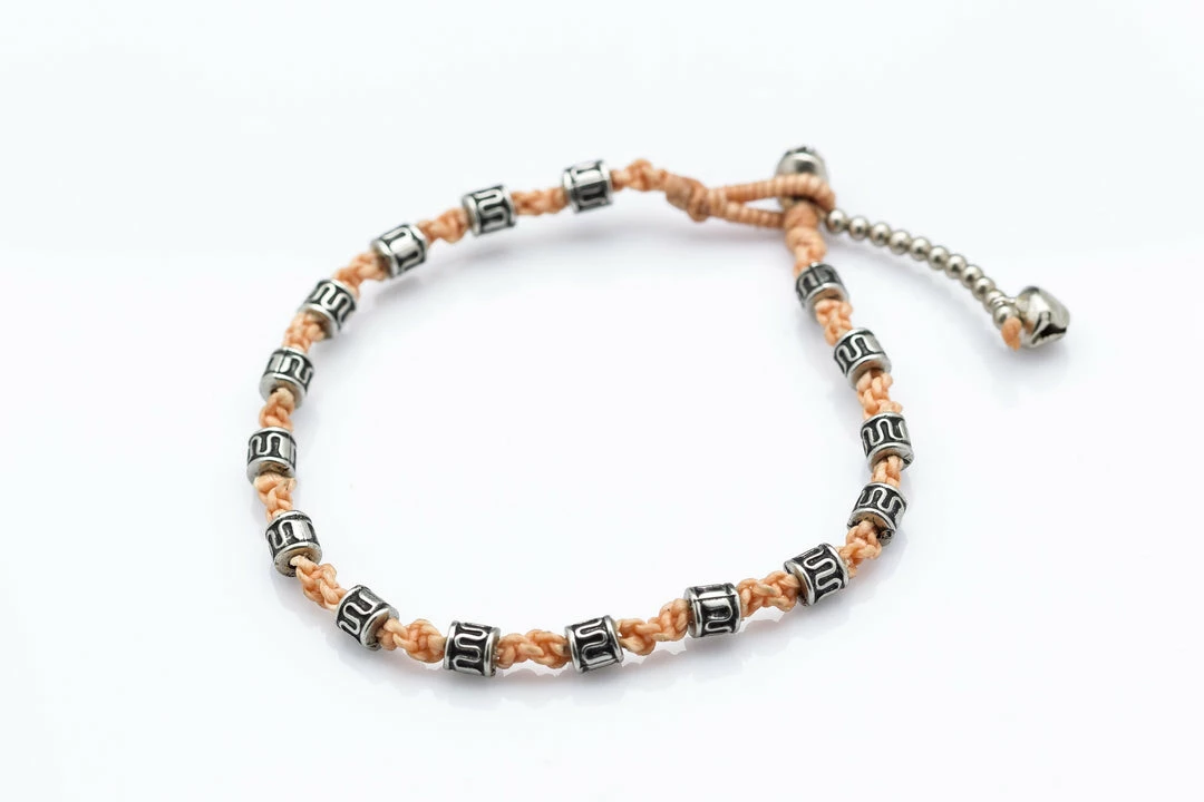 Hand Made Fair Trade Anklet Waxed Cotton Silver Beads Peach