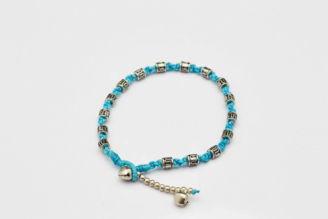 Hand Made Fair Trade Anklet Waxed Cotton Silver Beads Turquoise