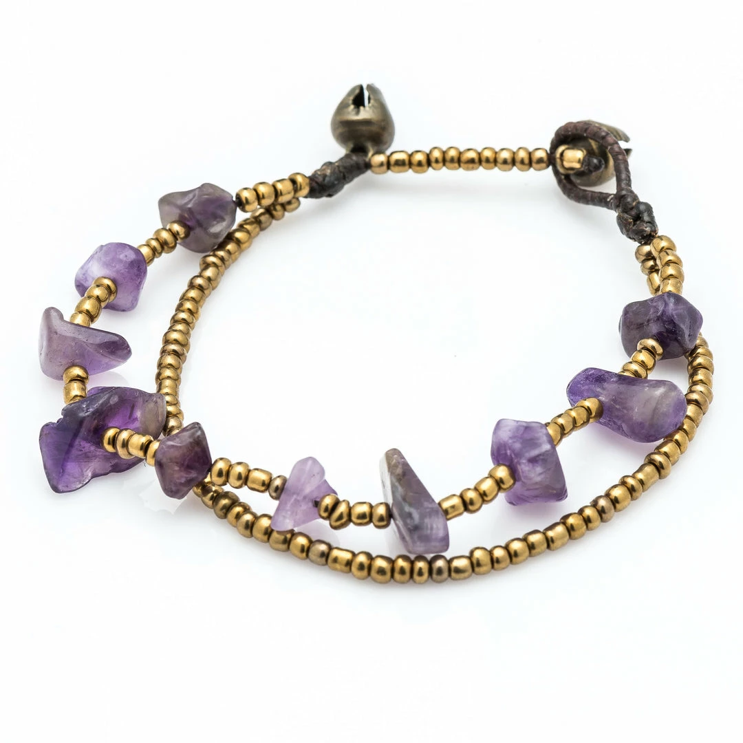 HaremPants.com Handmade Bracelets Brass Bead And Violet Stone Double Strand Bracelets