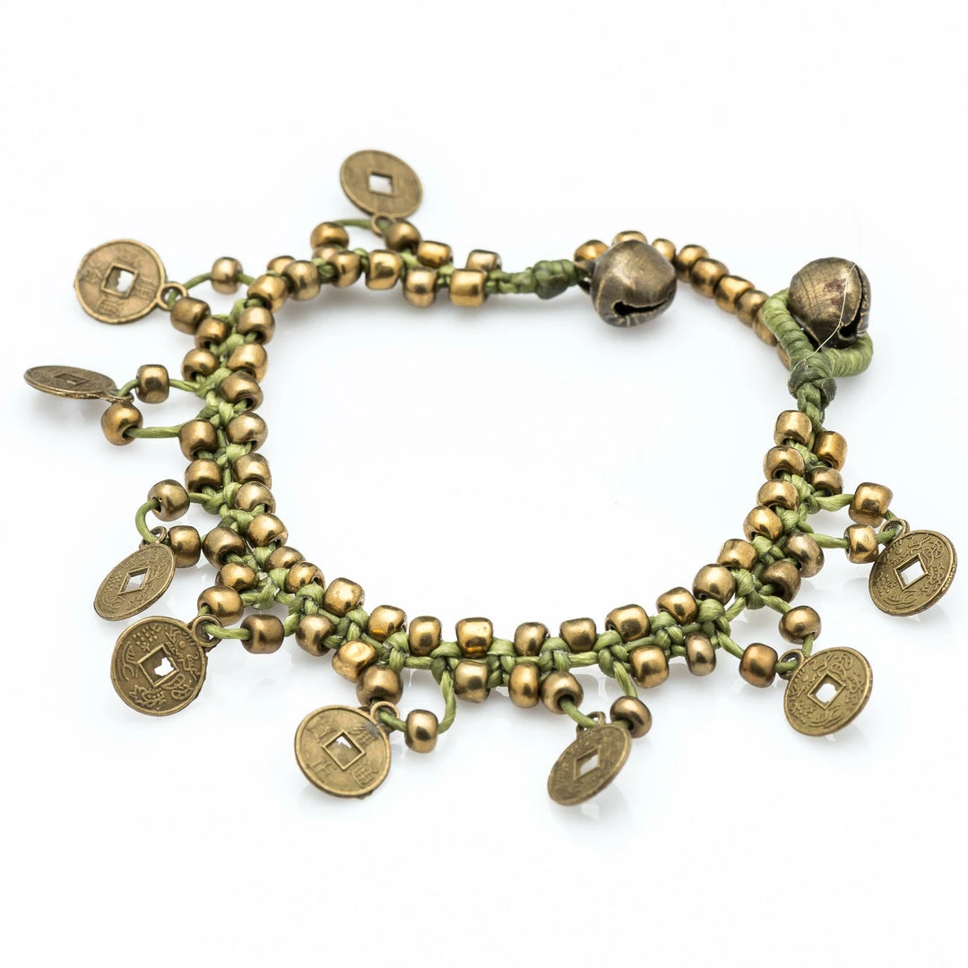 HaremPants.com Handmade Bracelets Chinese Coin Waxed Cotton Bracelets In Lime