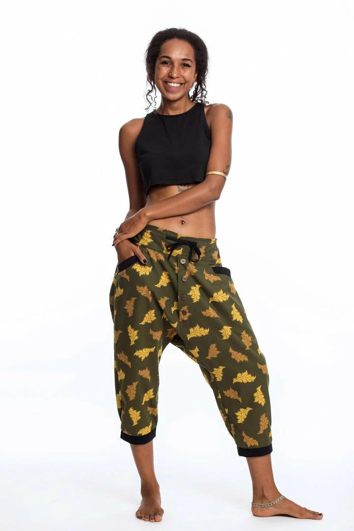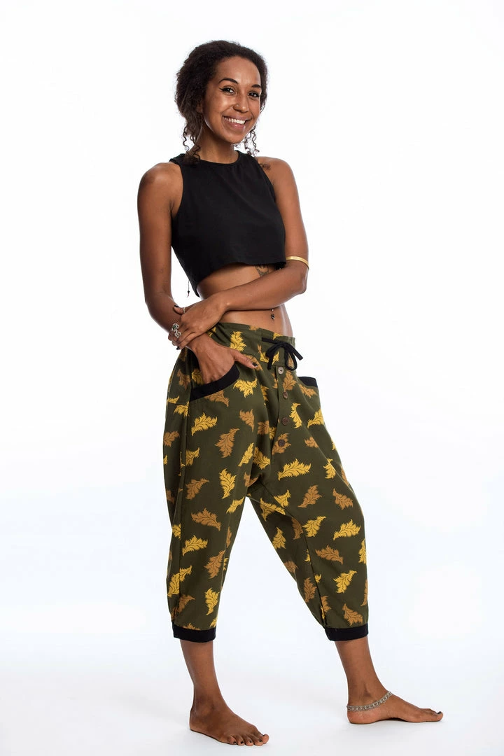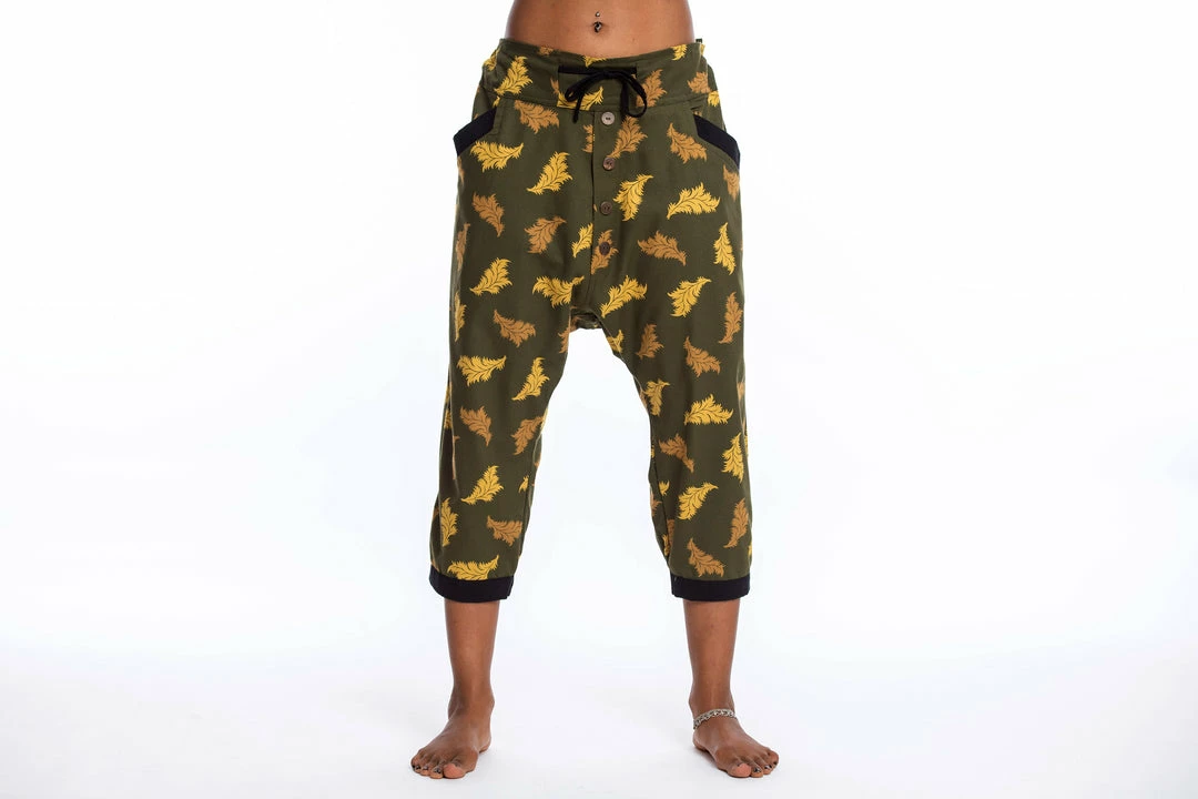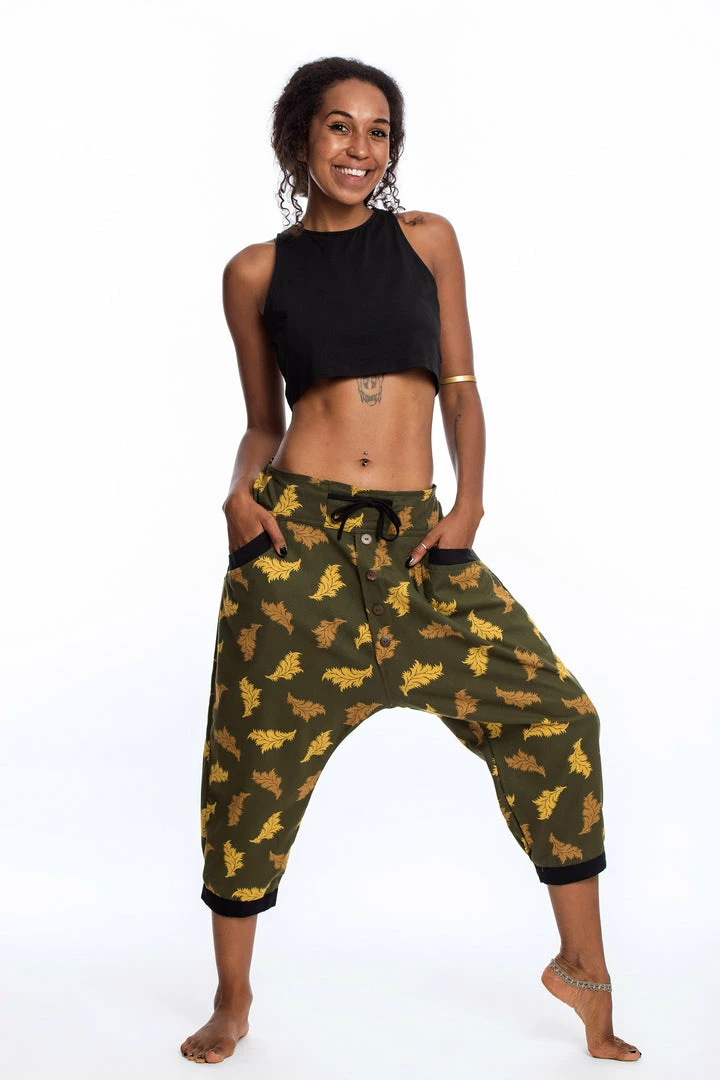 These cool harem pants are made of Thai Cotton with funky prints, stylish faux buttons, and pockets