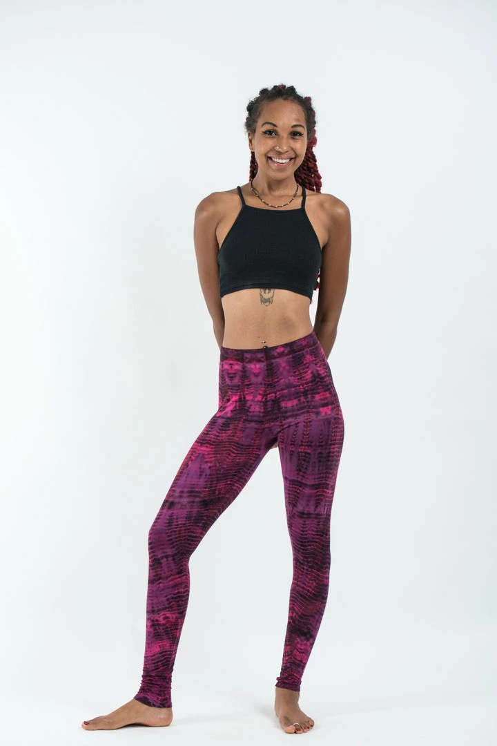 Unique electric designs tie dye leggings made from soft cotton material.