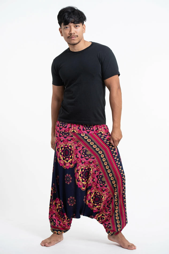 HaremPants.com Lotus Mandalas Drop Crotch Men’s Harem Pants In Navy