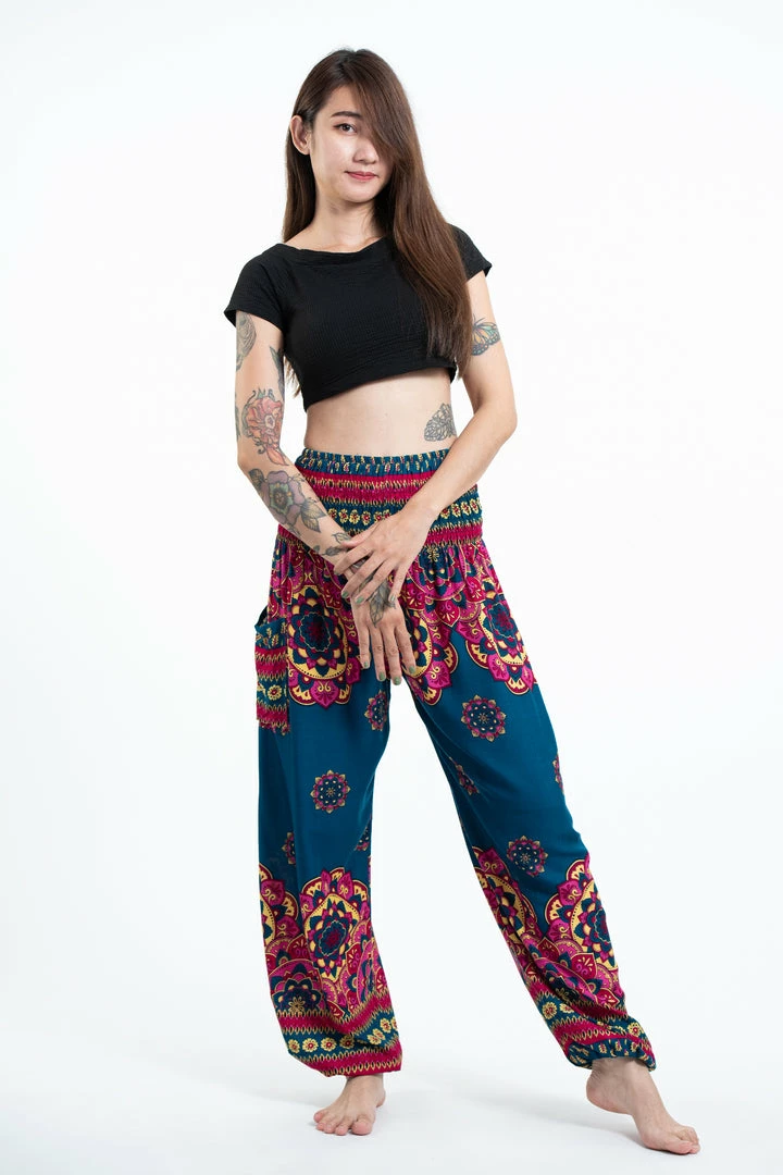 HaremPants.com Lotus Mandalas Women’s Harem Pants In Turquoise