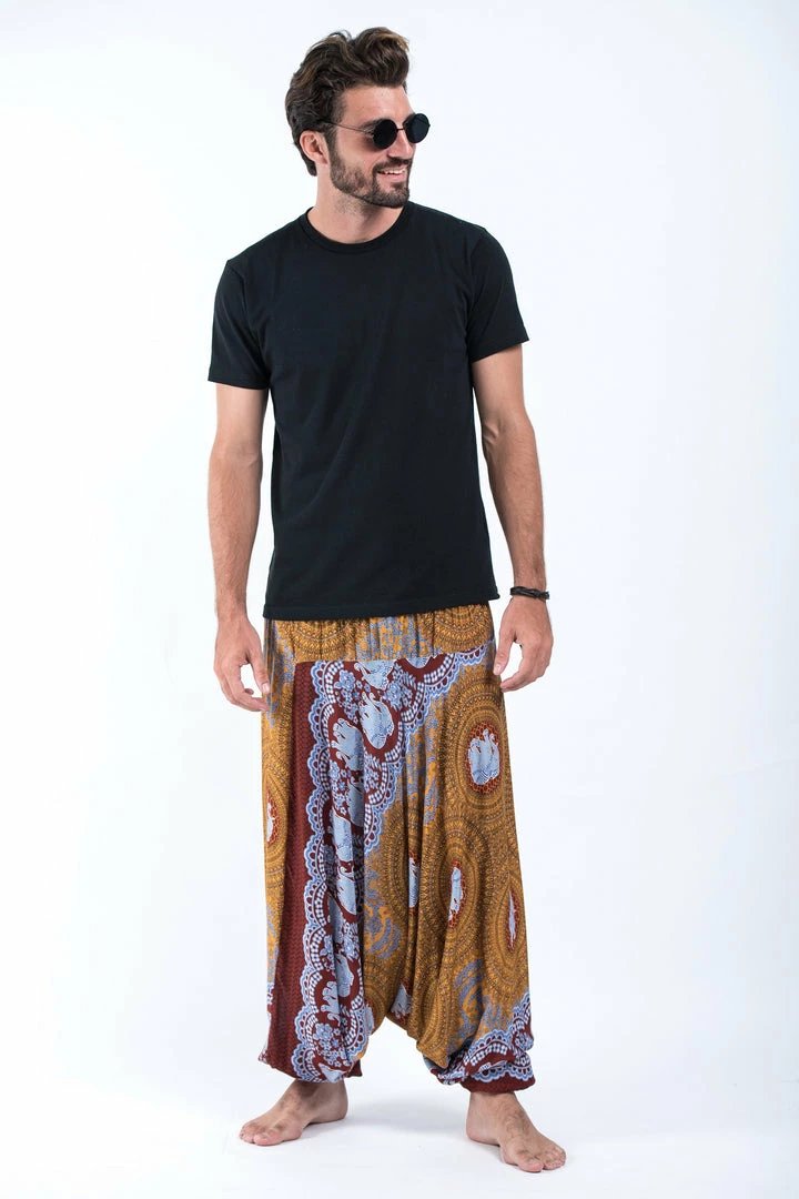 HaremPants.com Mandala Elephant Drop Crotch Men’s Elephant Pants In Bronze
