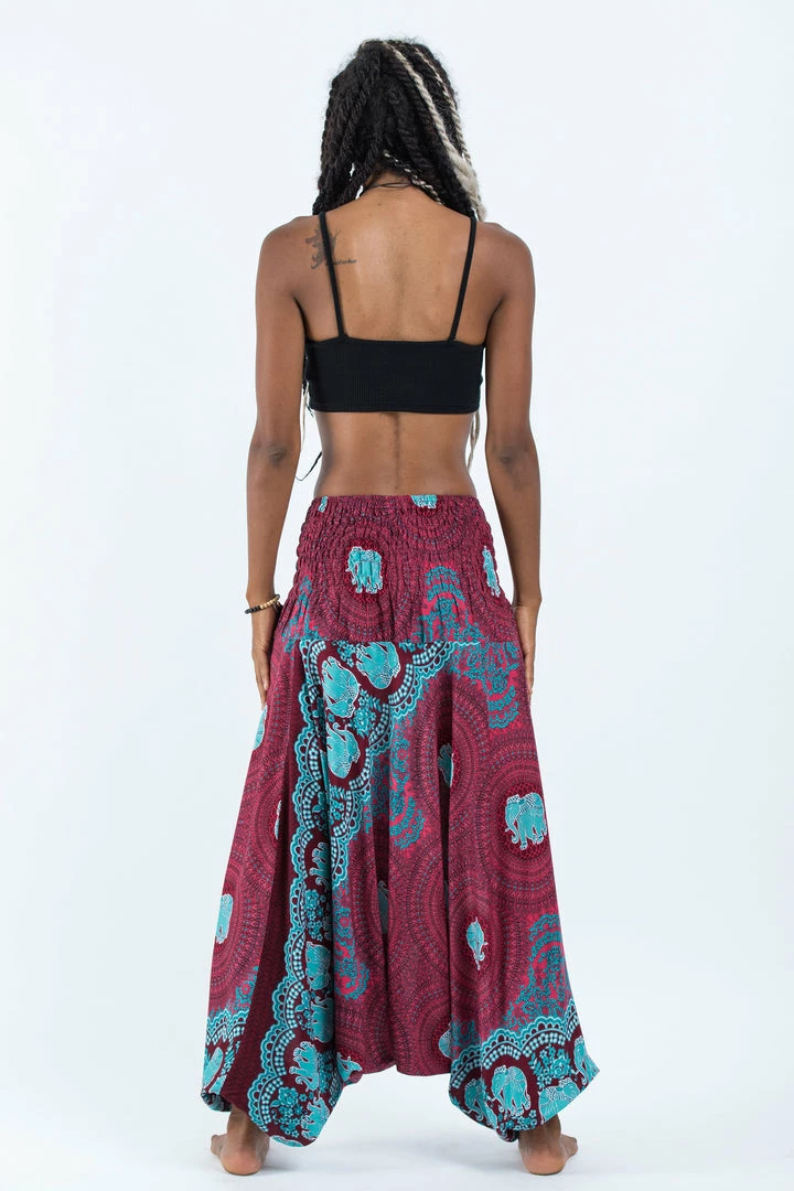 HaremPants.com Mandala Elephant Jumpsuit Elephant Pants In Red