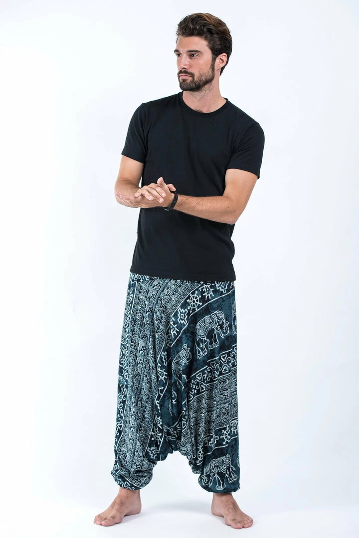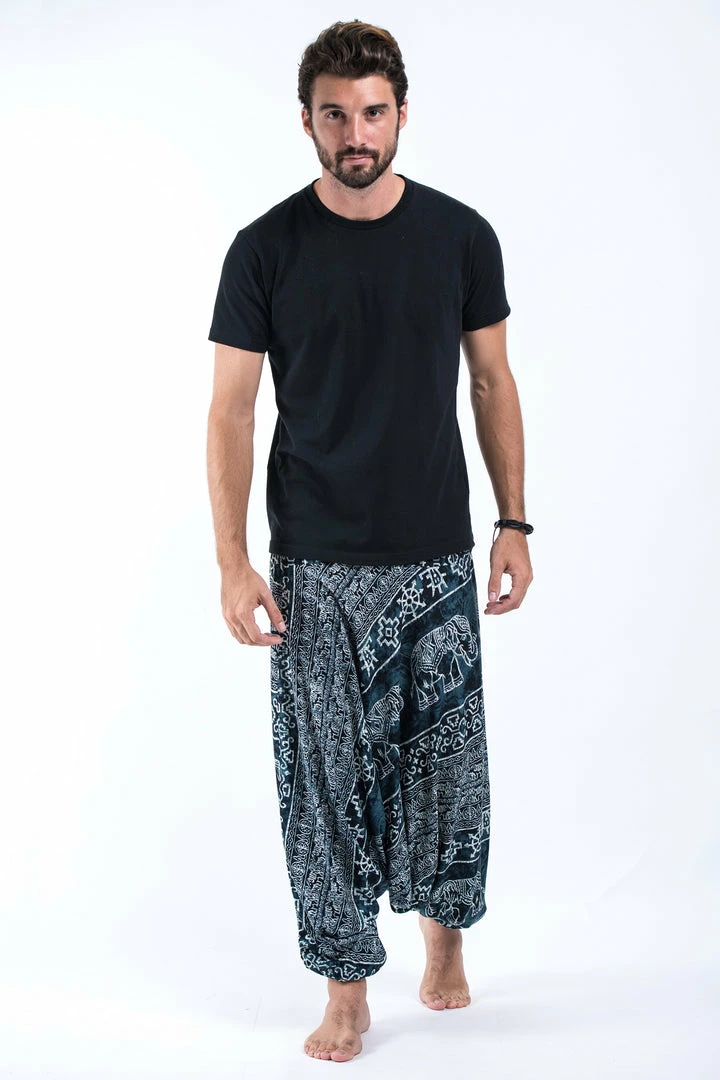 HaremPants.com Marble Elephant Drop Crotch Men’s Elephant Pants In Black