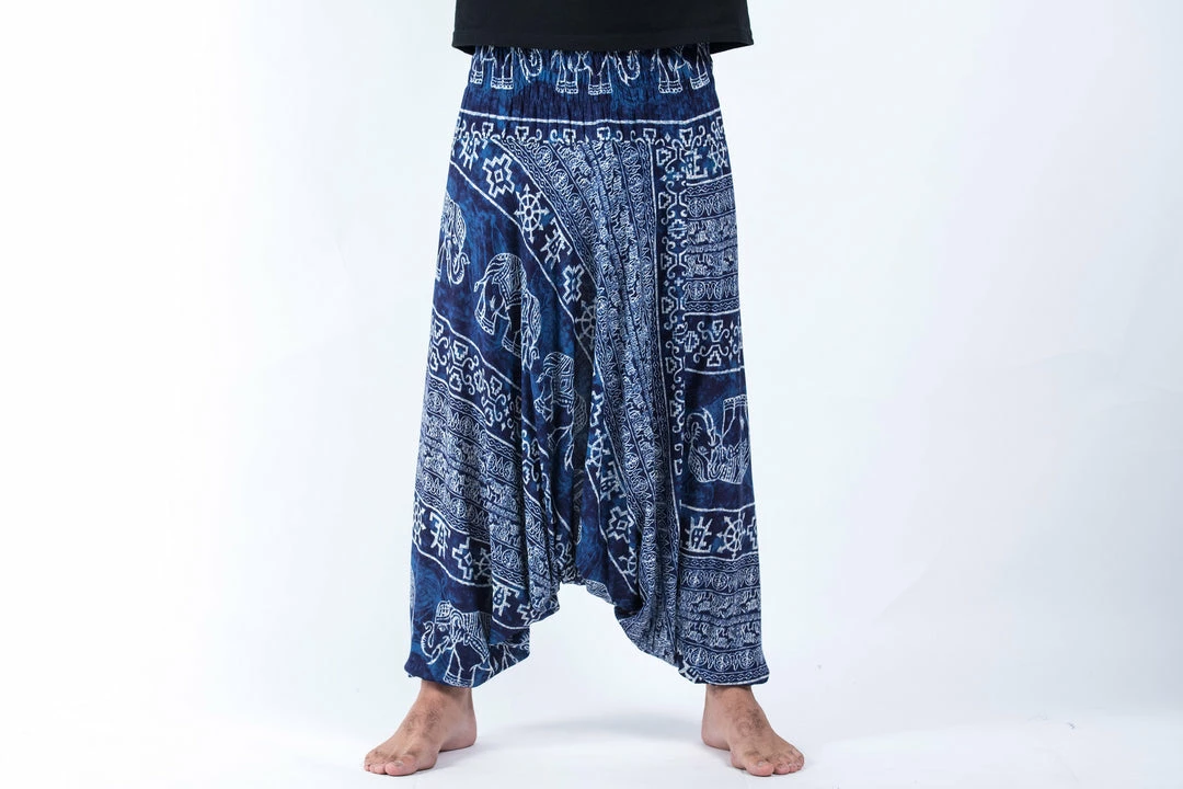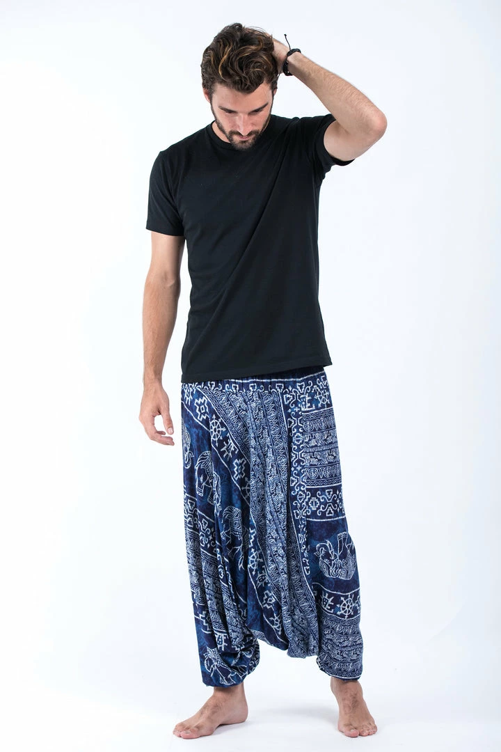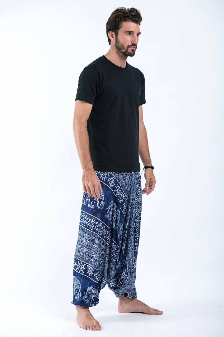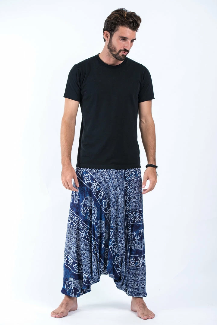 HaremPants.com Marble Elephant Drop Crotch Men’s Elephant Pants In Blue
