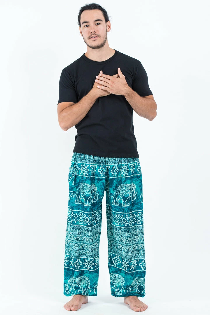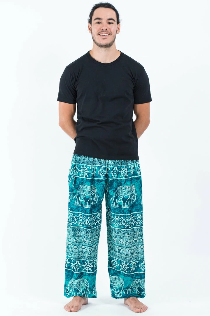 HaremPants.com Marble Elephant Men’s Elephant Pants In Turquoise