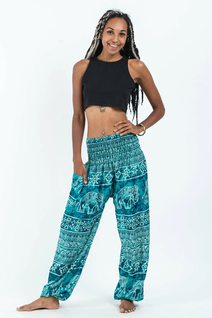 HaremPants.com Marble Elephant Women’s Elephant Pants In Turquoise