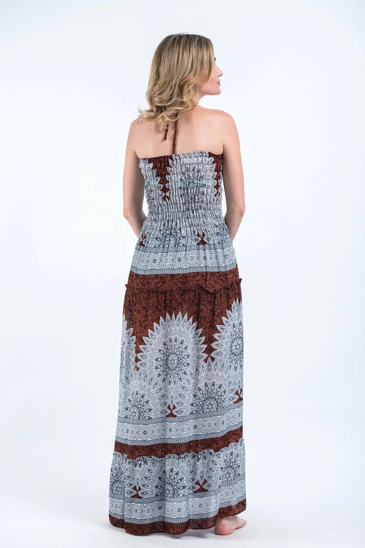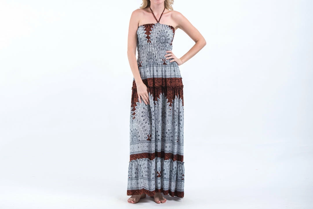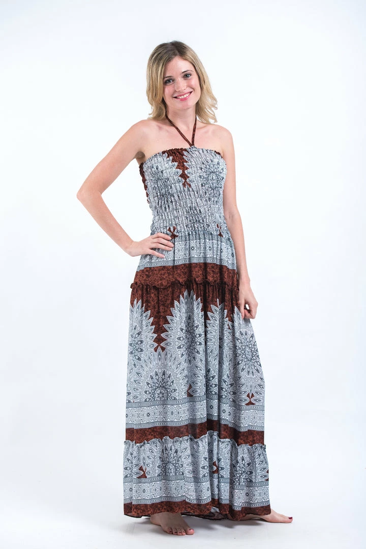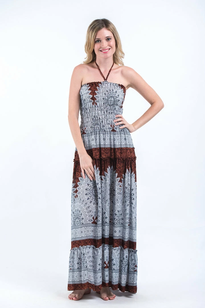 Have a beautiful look with our bohemian design bandeau dress with a smocked top and removable halter straps, made with Thai rayon fabric – best for summer beach time from sunbathing to sightseeing.