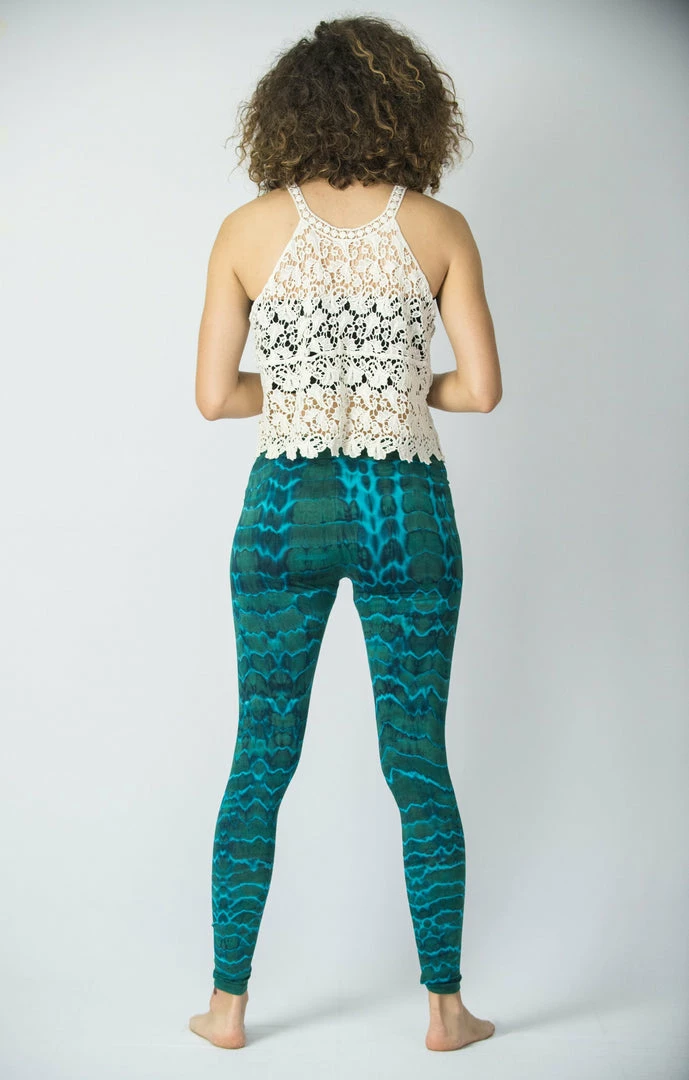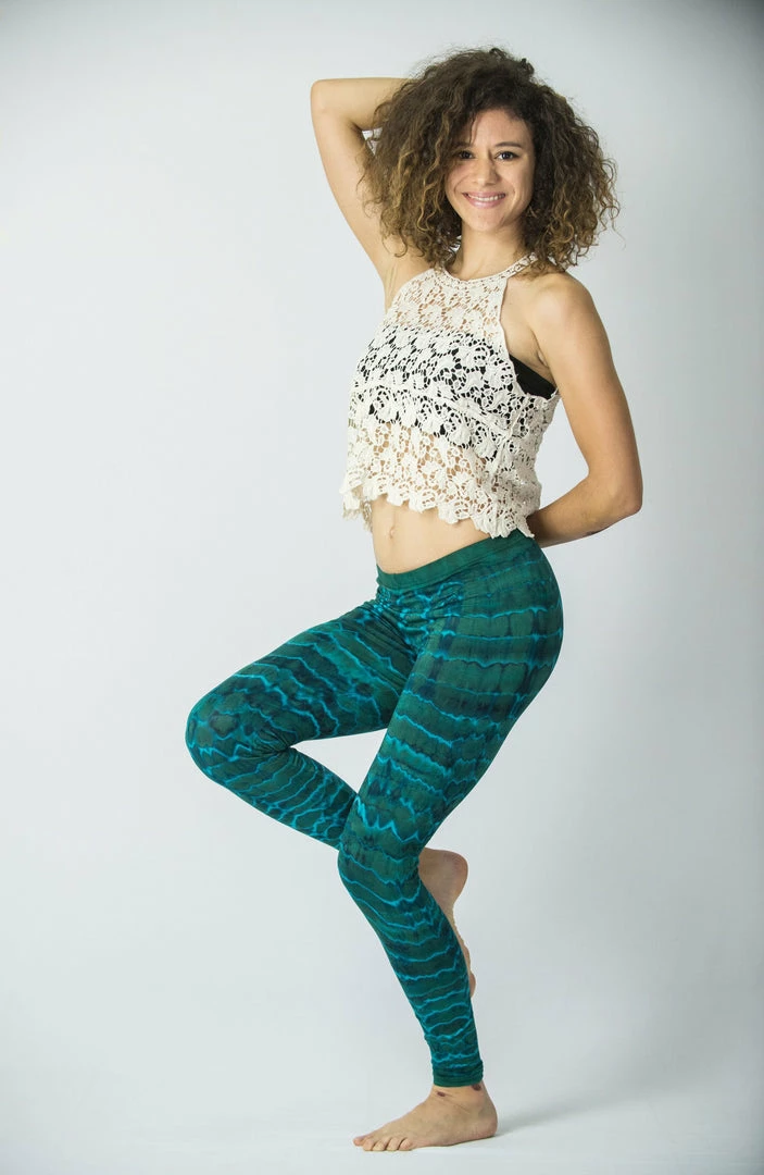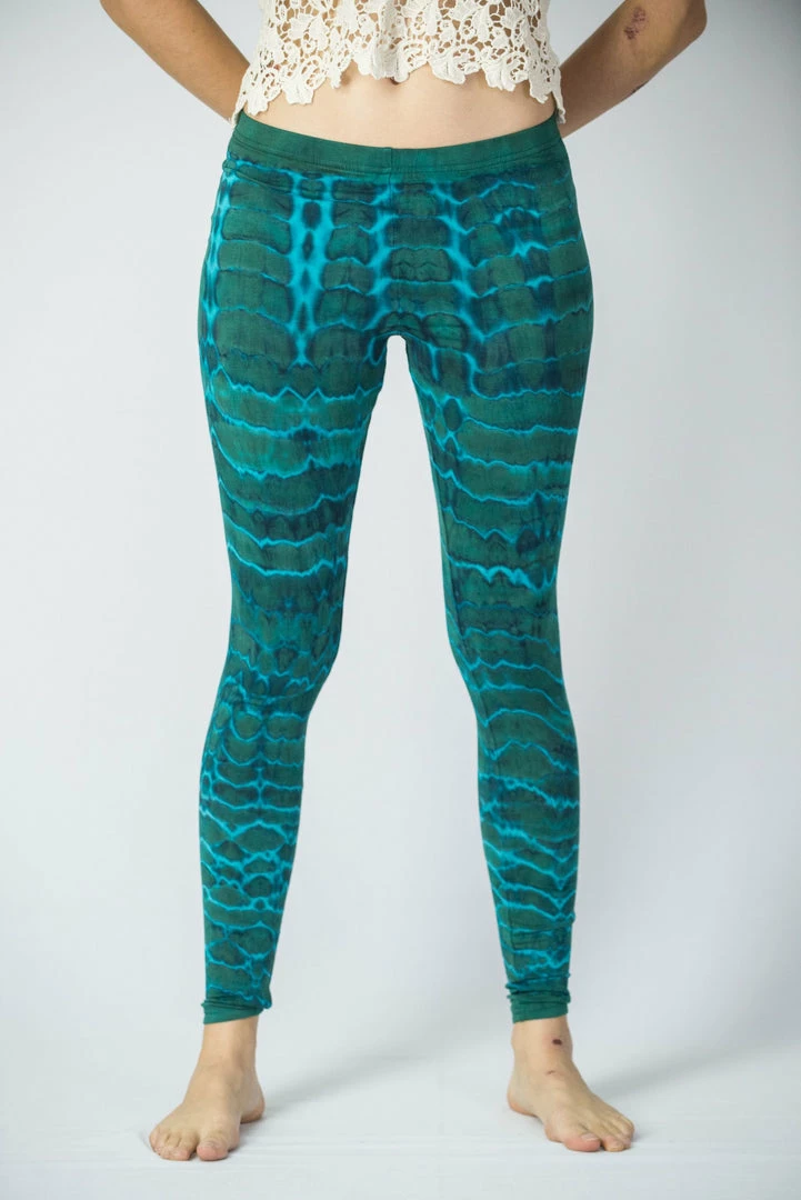 Unique electric designs tie dye leggings made from soft cotton material.