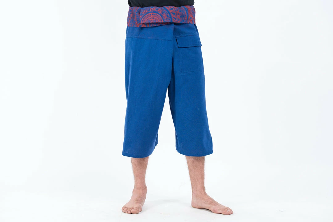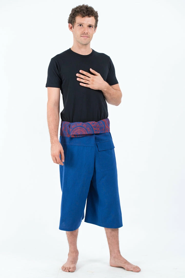 HaremPants.com Men’s Cropped Fisherman Pants With Pattern Waist Band In Blue
